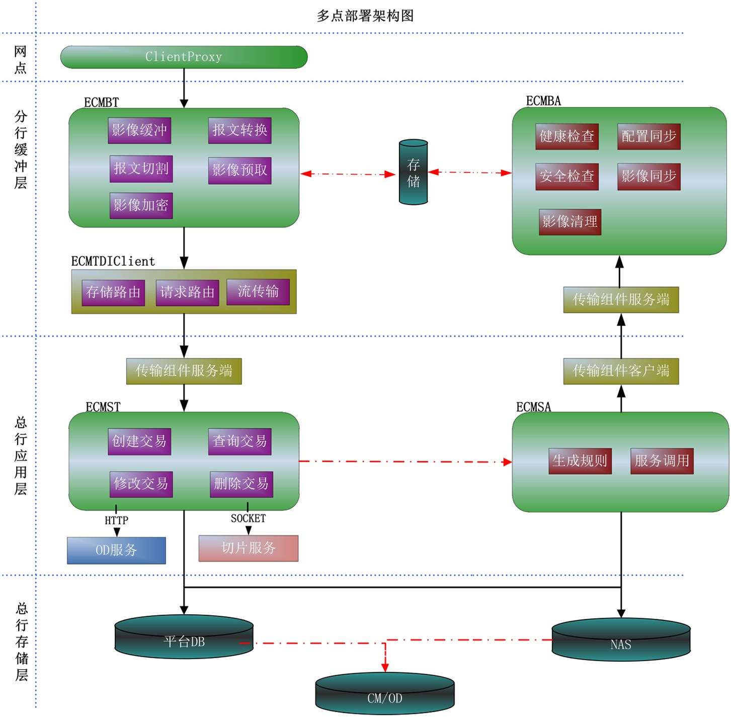交通银行在电子数据存储管理上采用多点部署架构提高系统的可用性,其优点如下: