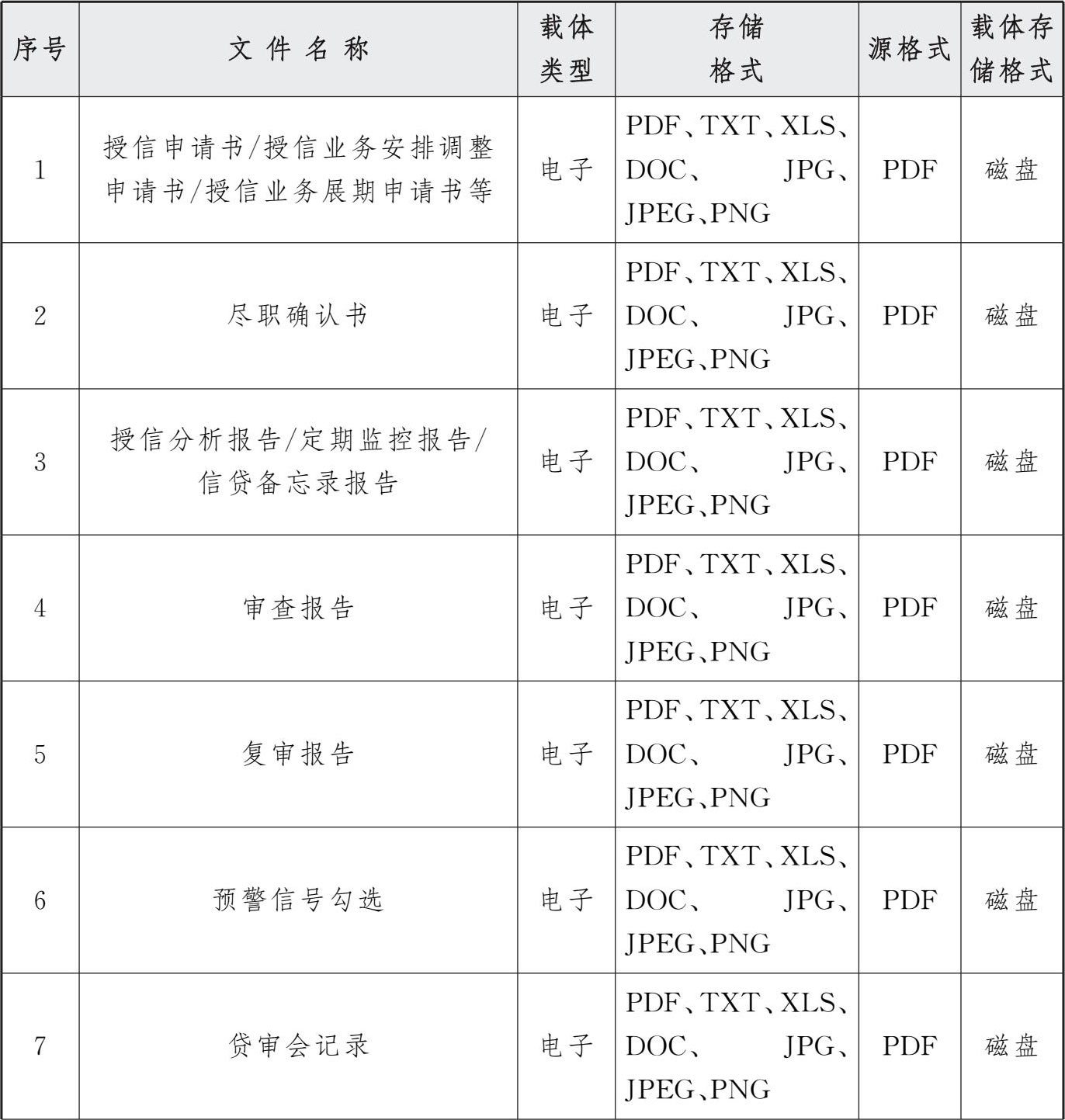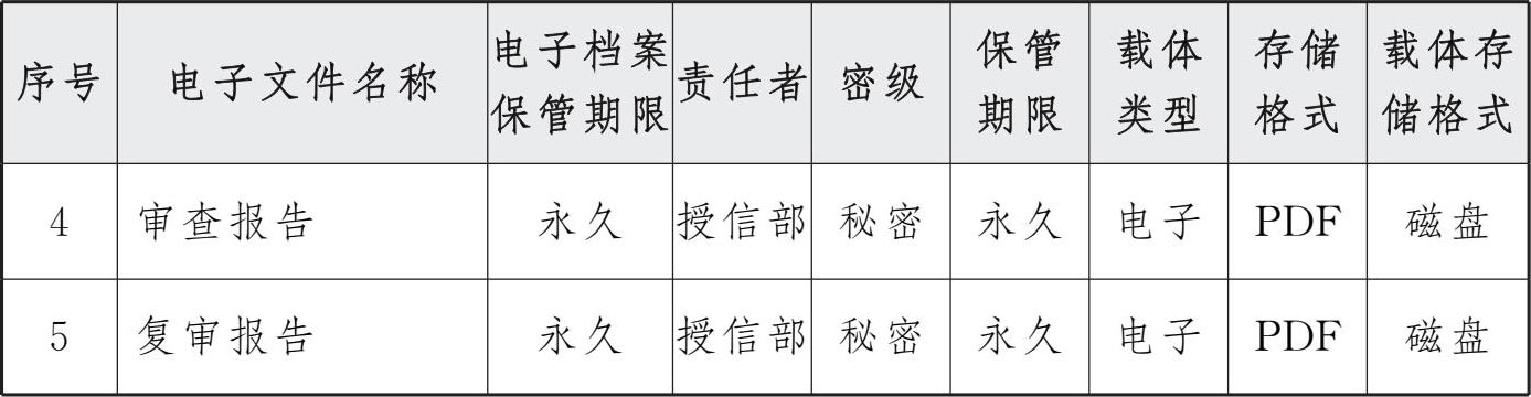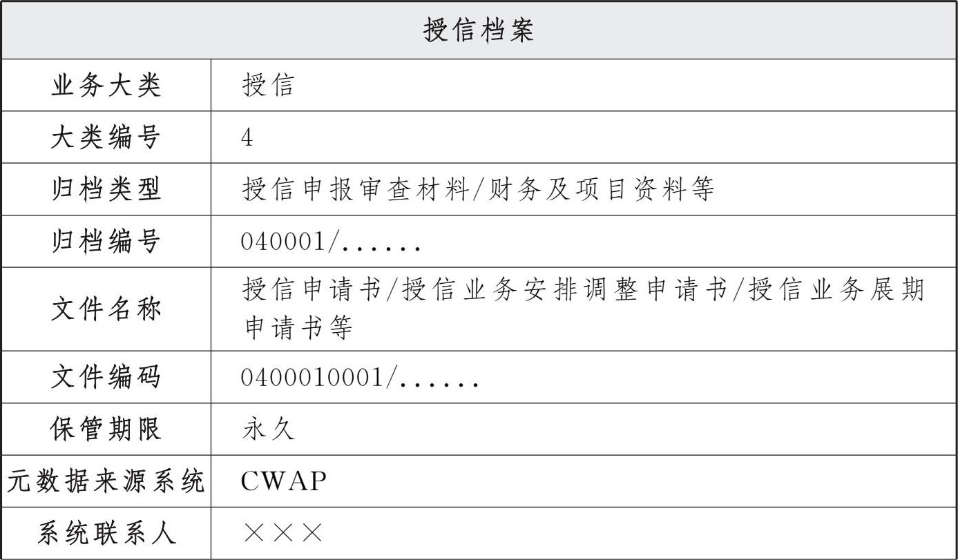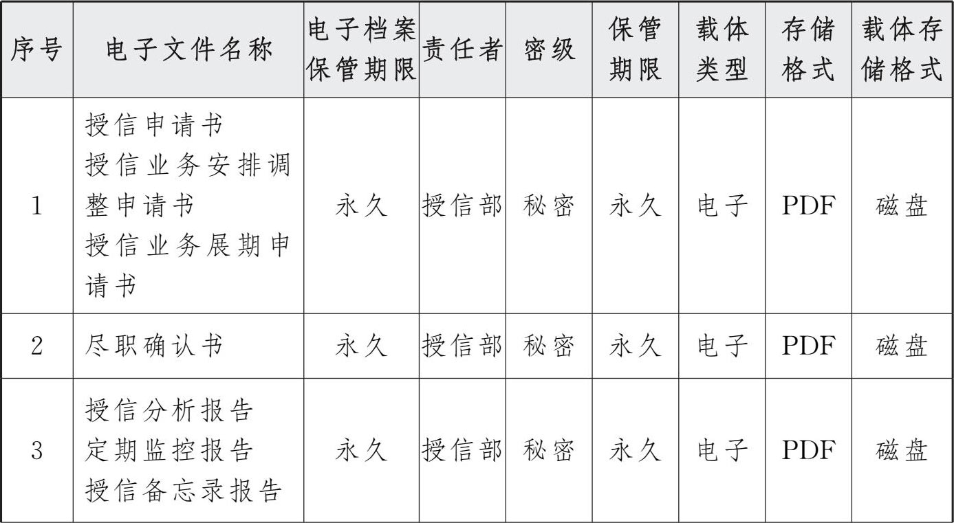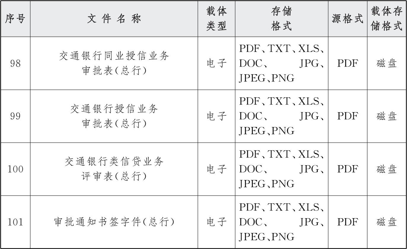 表3 交行授信审批系统电子文件归档存储格式