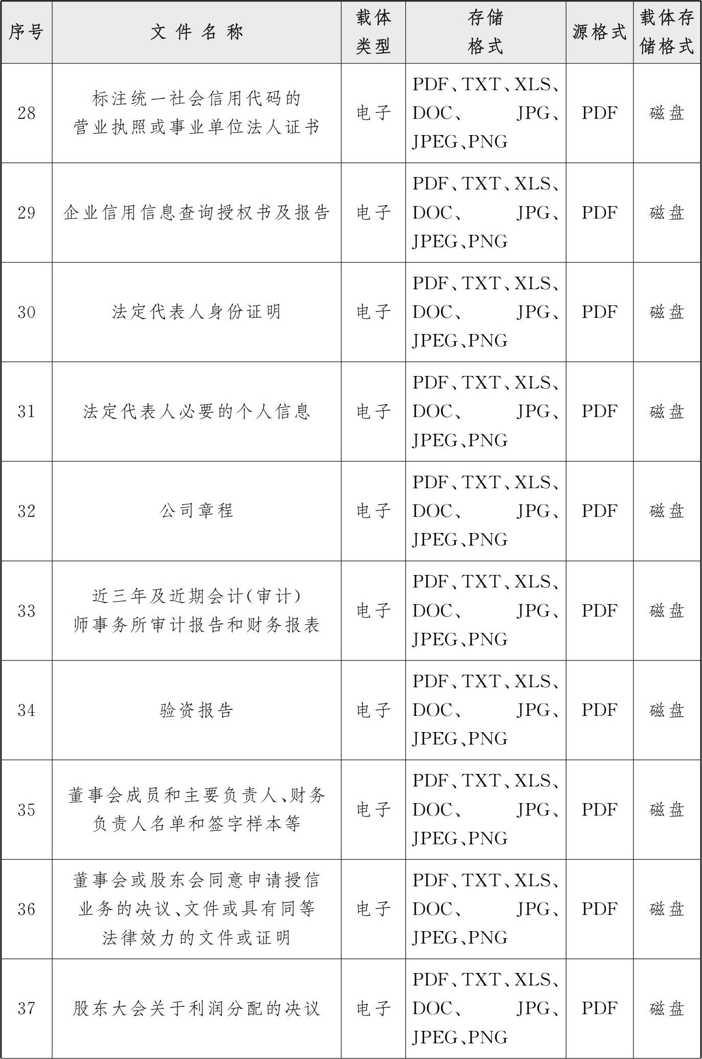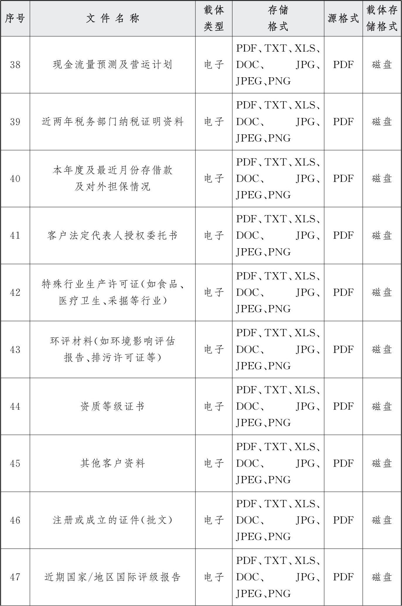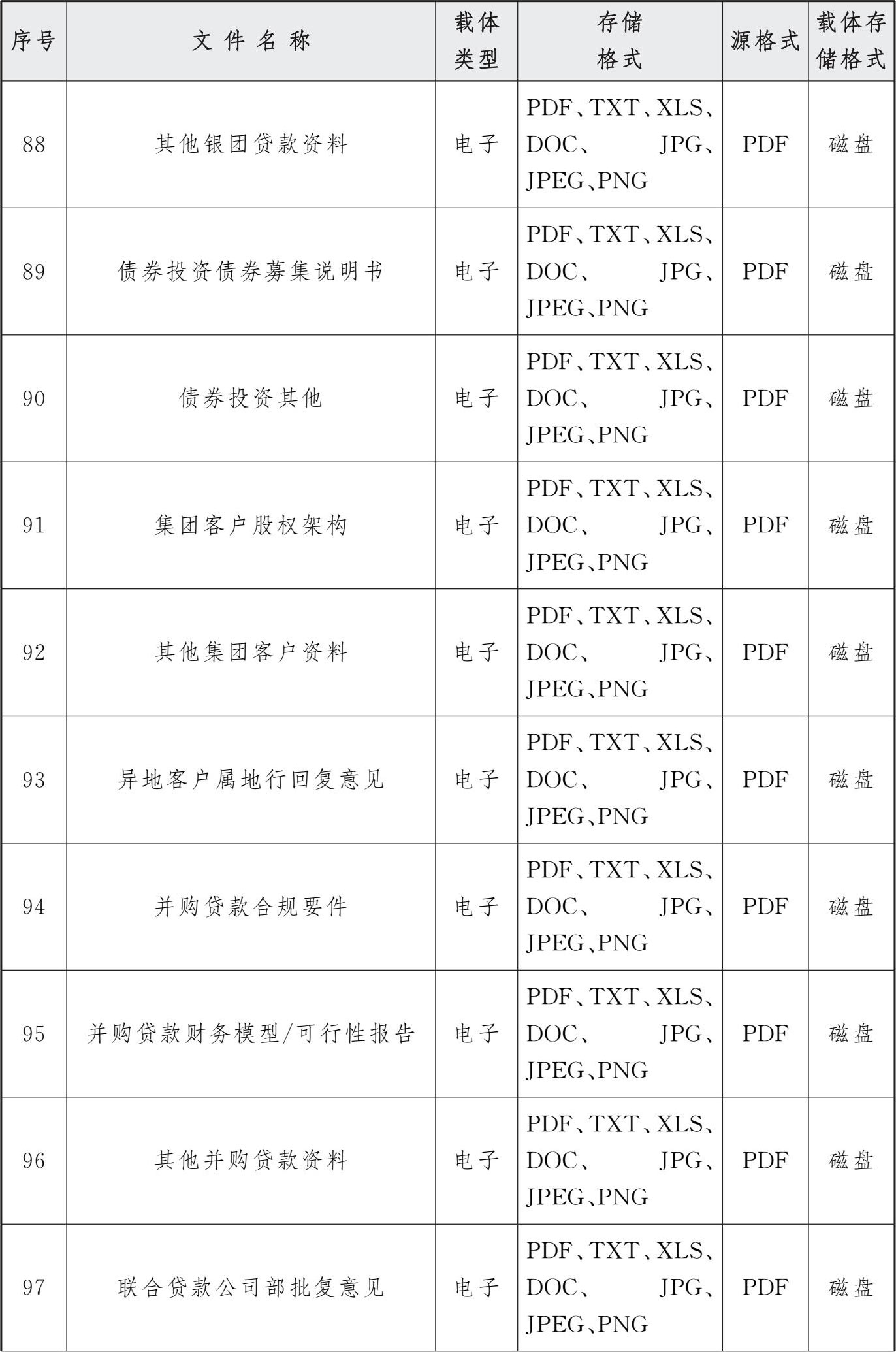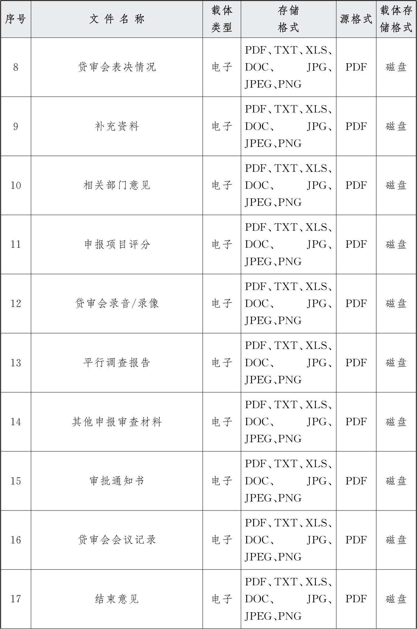 表3 交行授信审批系统电子文件归档存储格式
