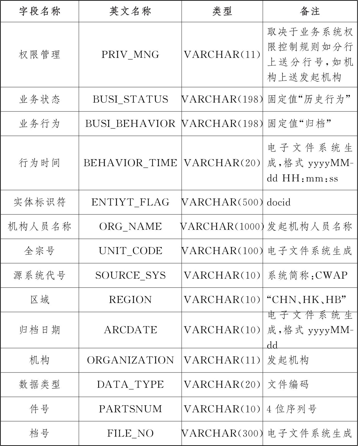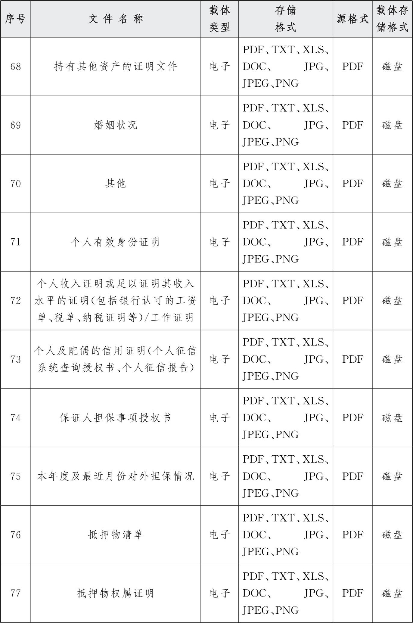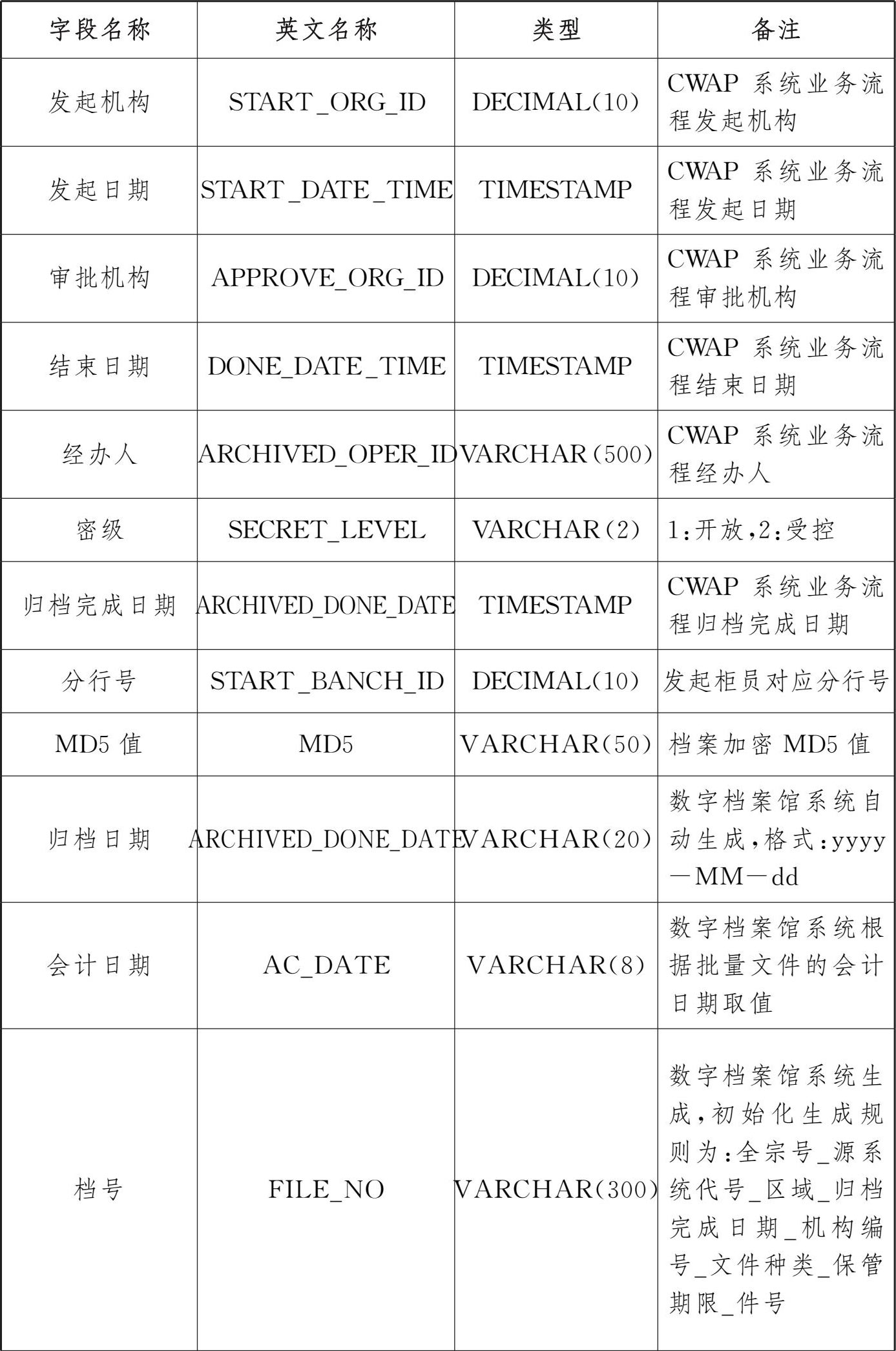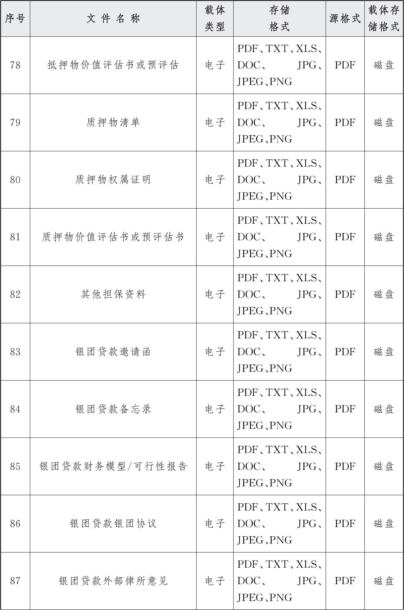 表3 交行授信审批系统电子文件归档存储格式