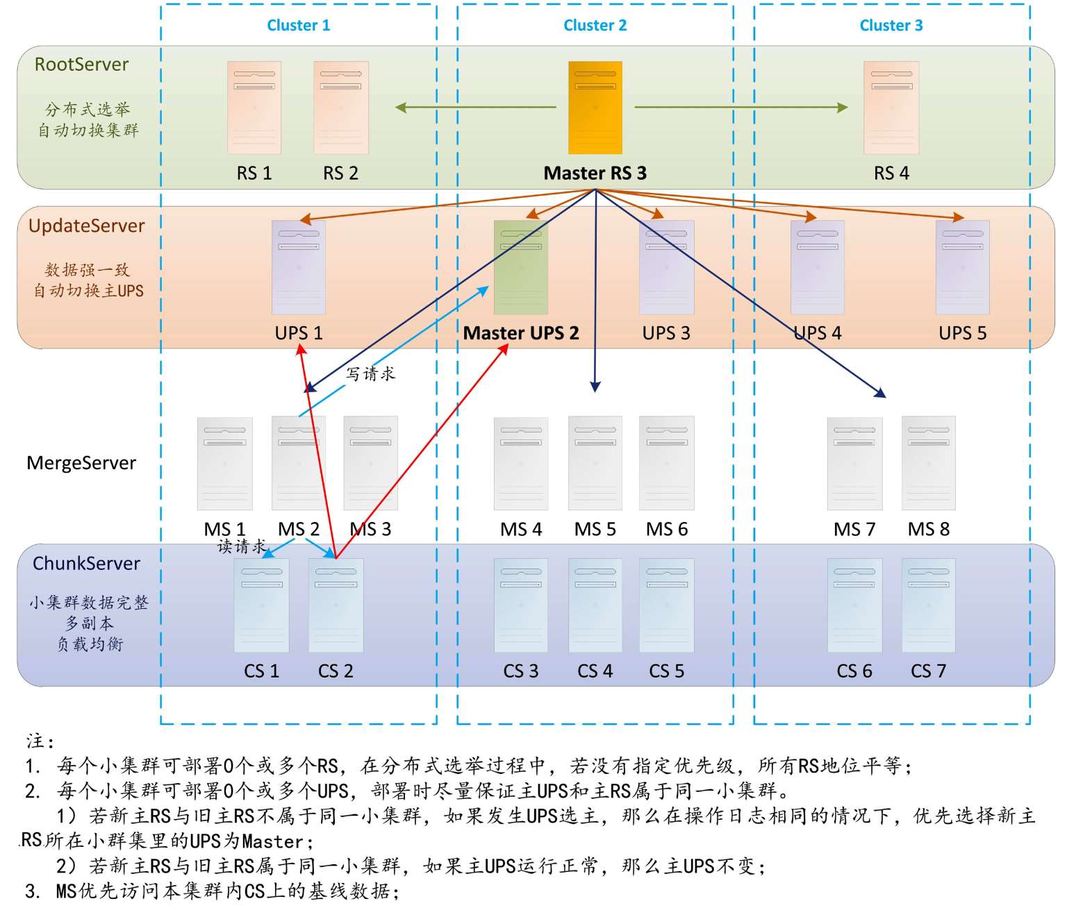 分布式架构(Master-Slave模式),保证系统的可用性。