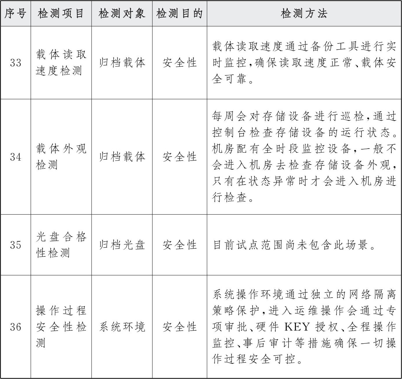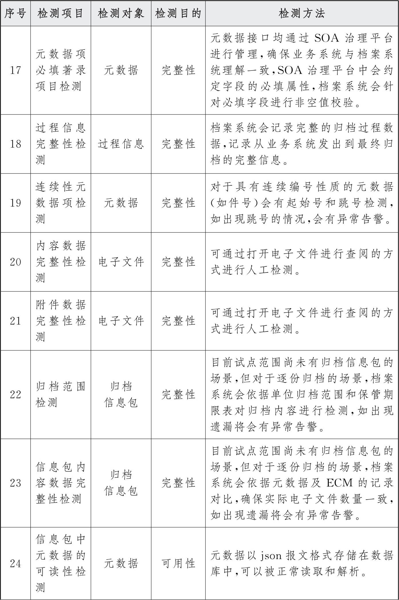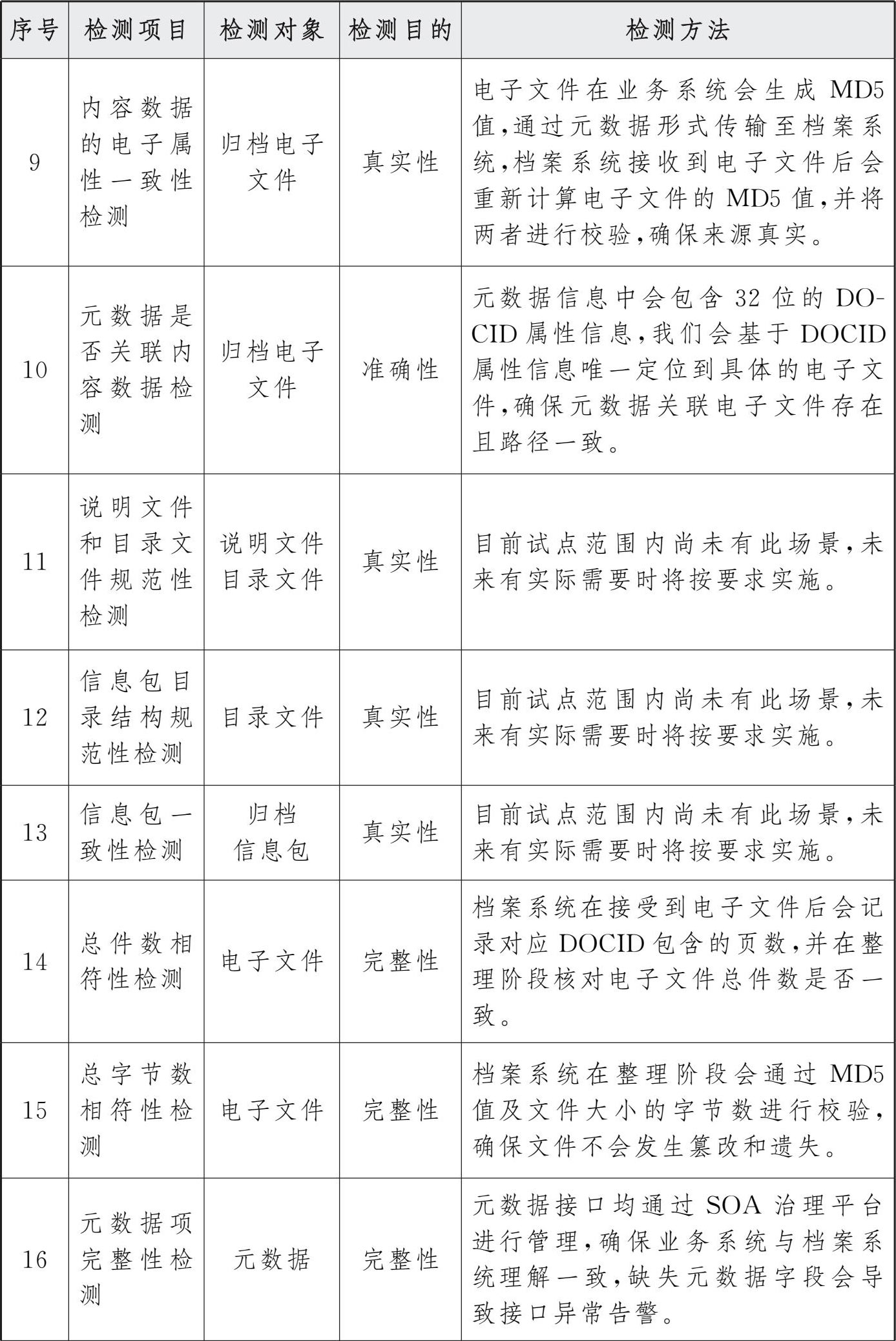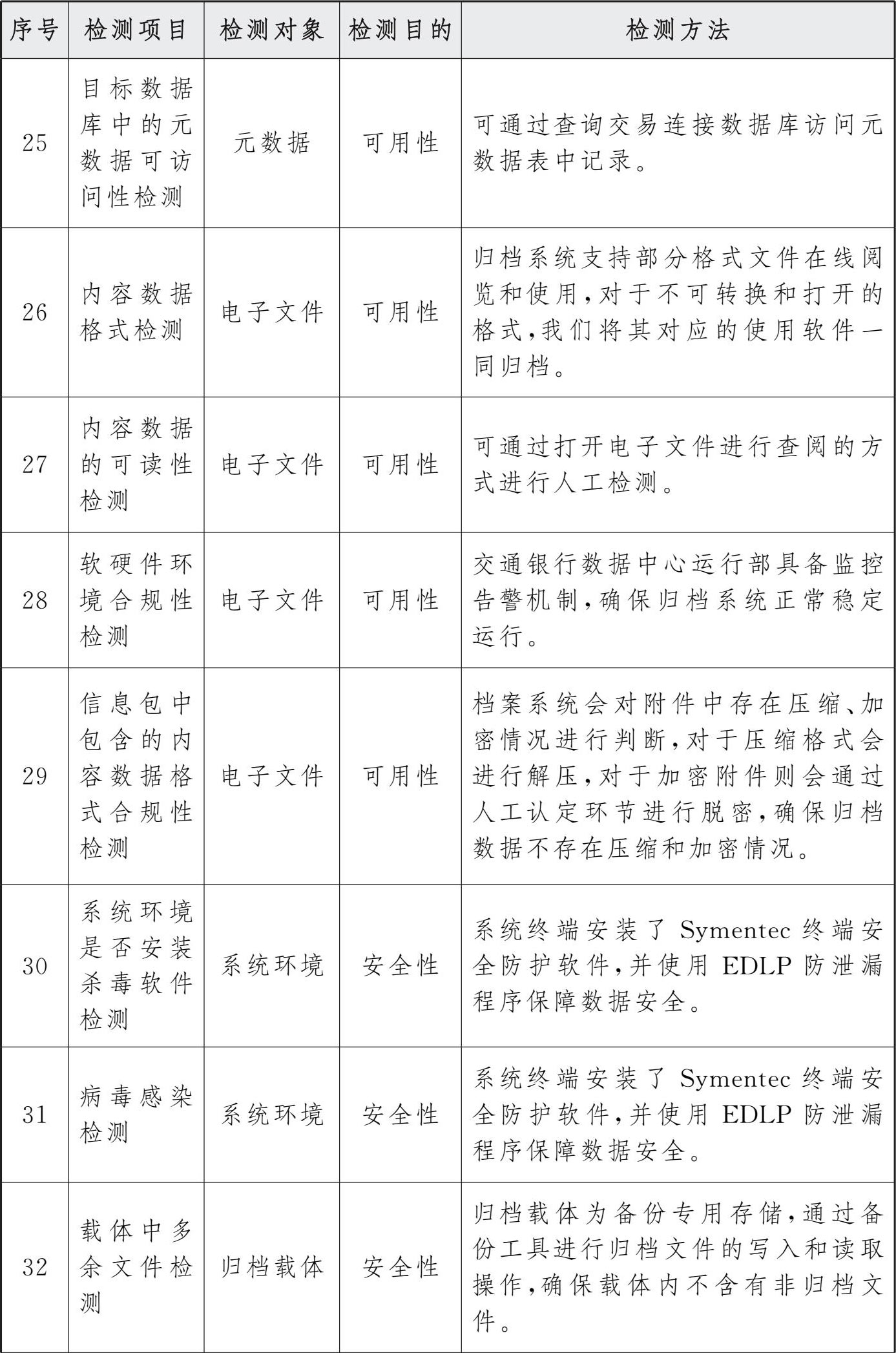 参考档案行业标准《文书类电子档案检测一般要求》(DA/T 70—2018)中列明的检测项目及要求,汇总整理四性相关检测内容及方法如下。