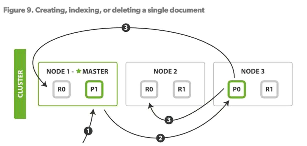 Node1根据文档ID (_id字段)计算出该文档应该属于shard0,然后请求路由到Node3的P0分片上。