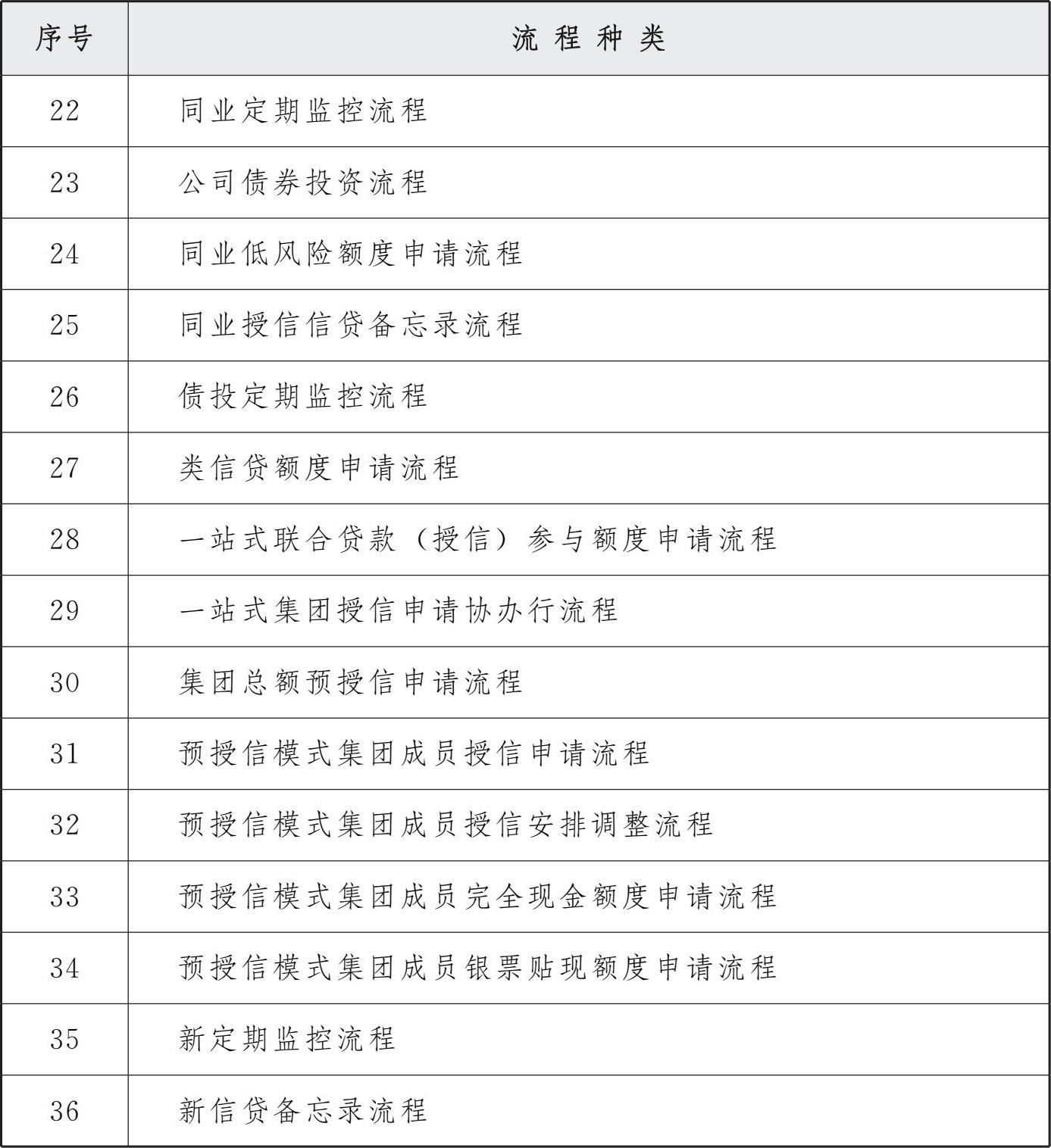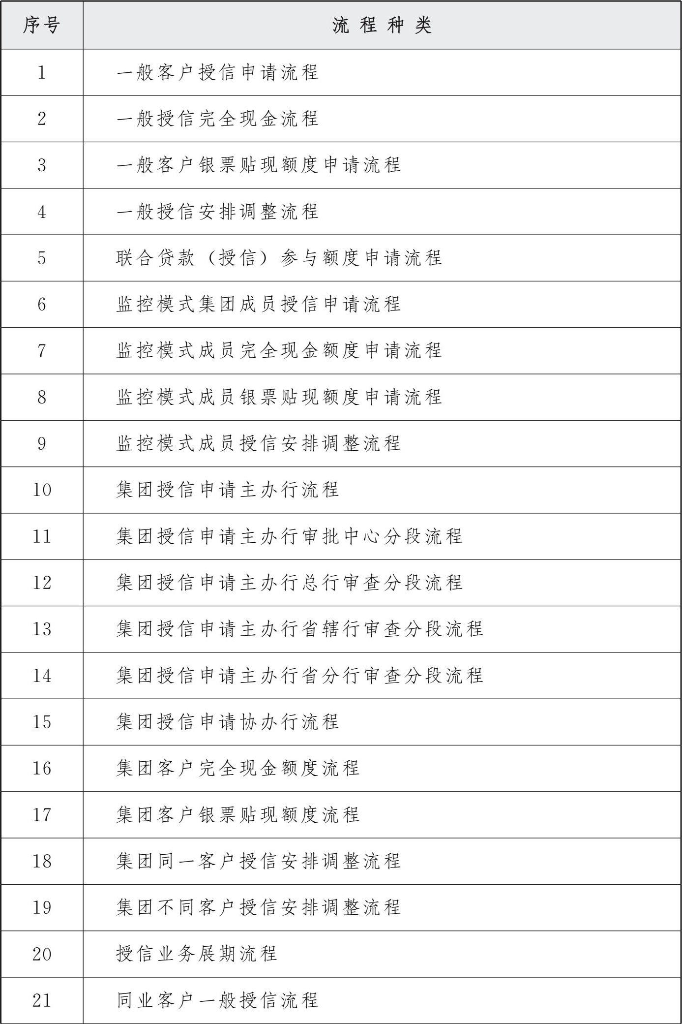 表2 授信审批系统流程种类表
