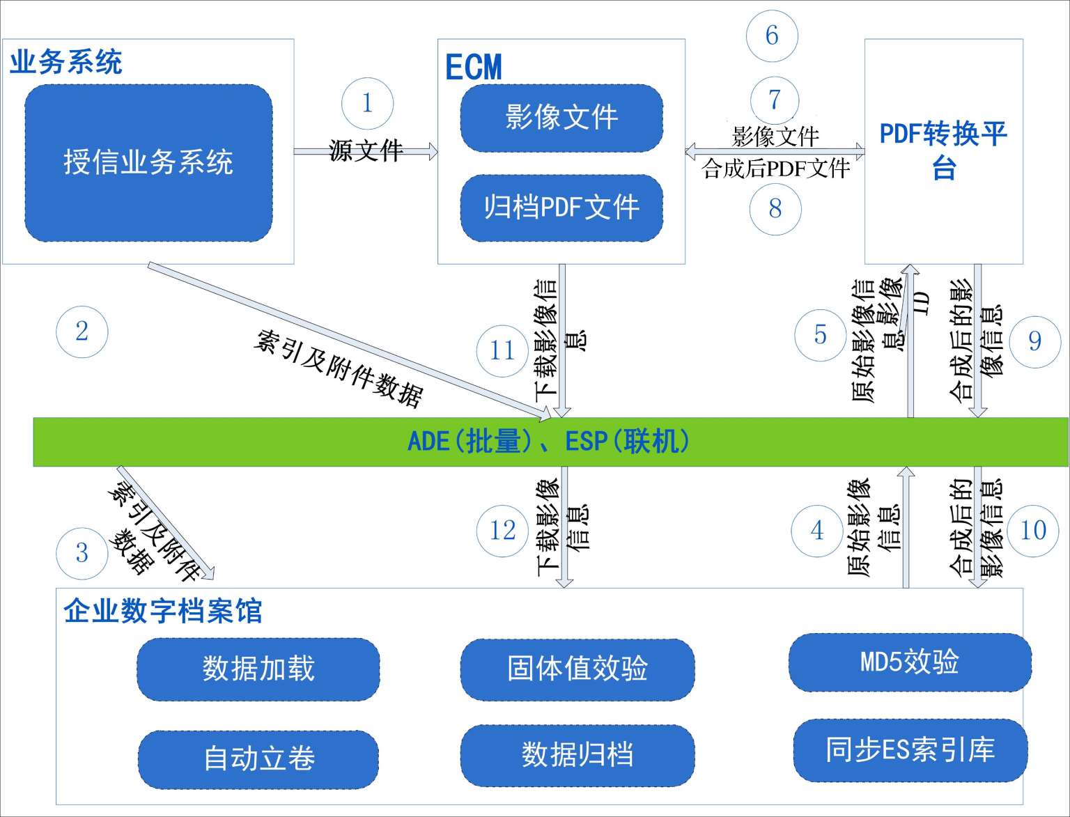 ①源系统将电子文件直接存入ECM平台。