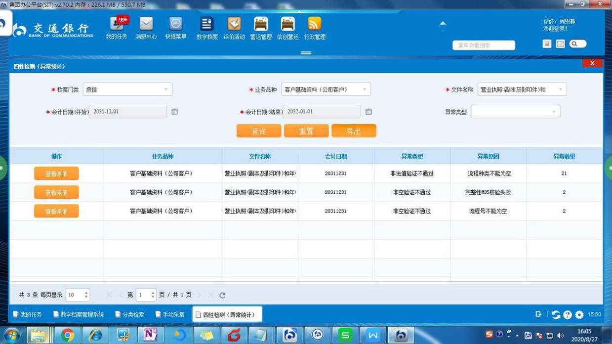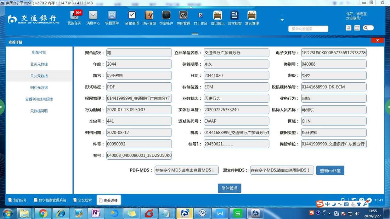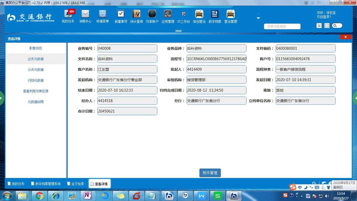 目前,交通银行授信审批系统产生的文件以电子流转为主,归档存量电子文件约40万余份。