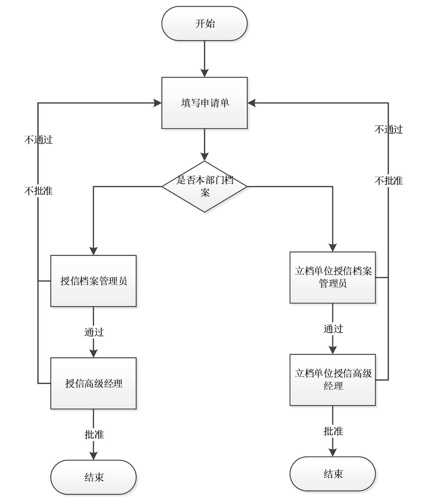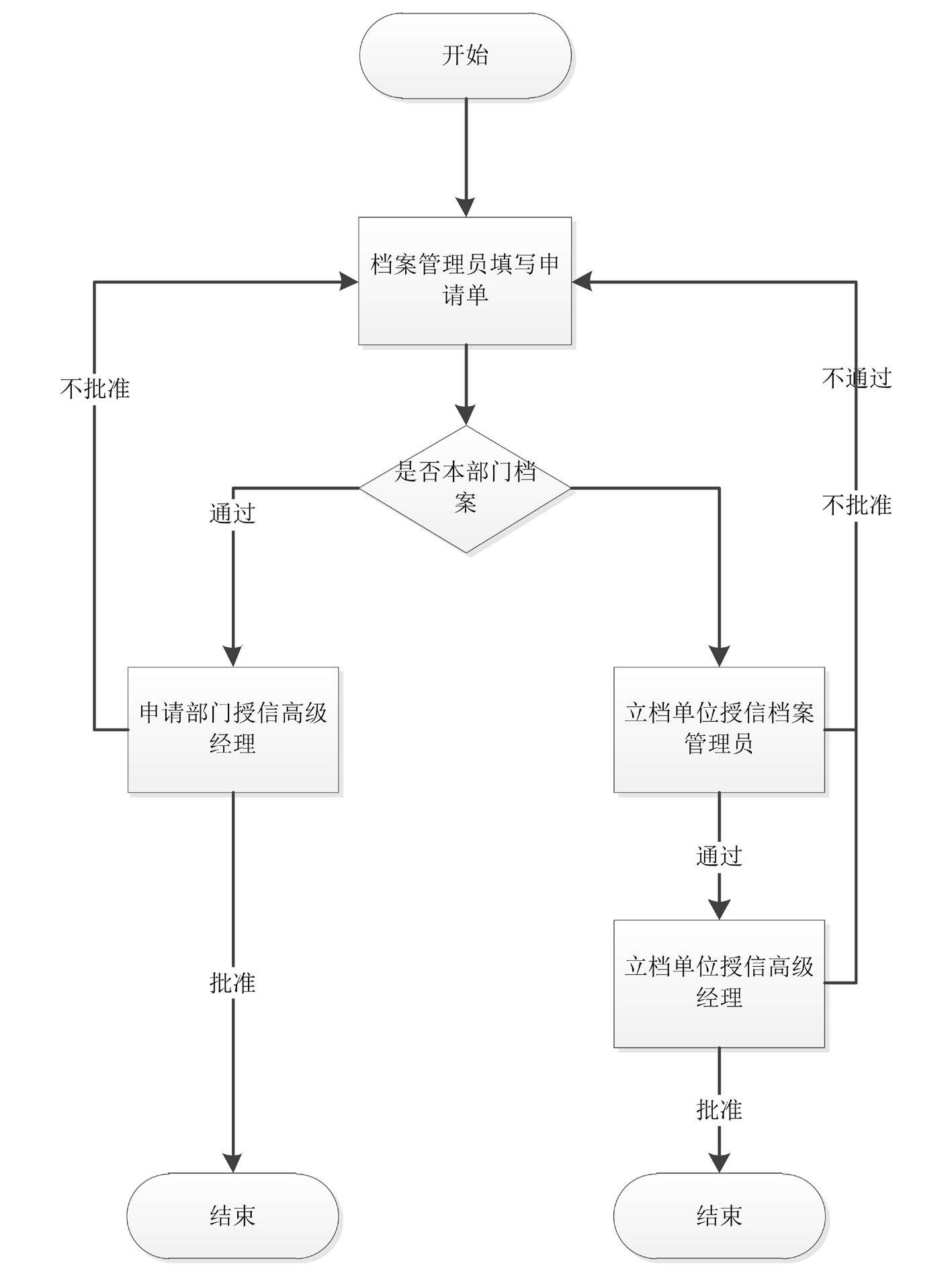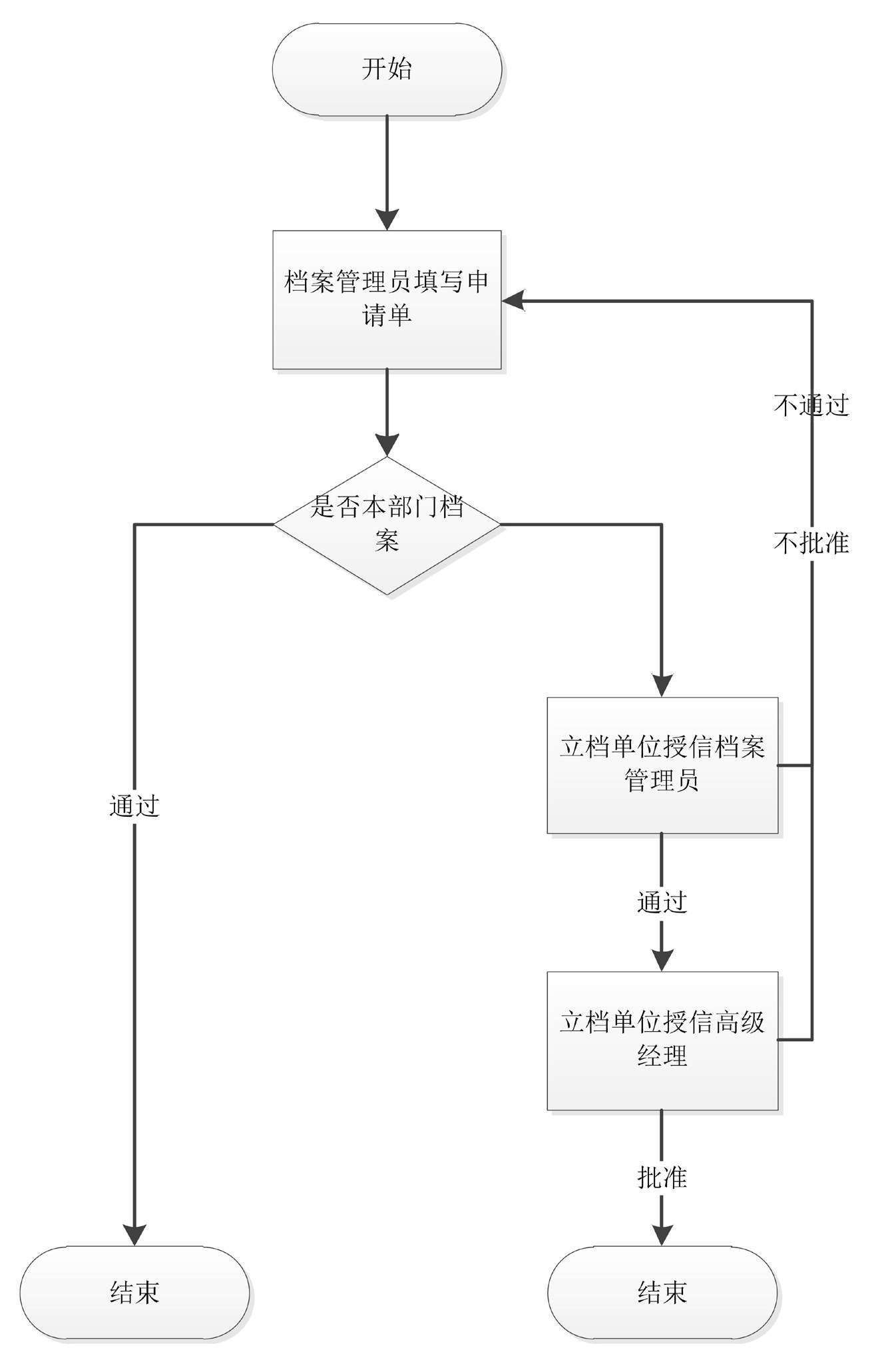 (ii)不通过则发送给办公室档案管理员重新处理。
