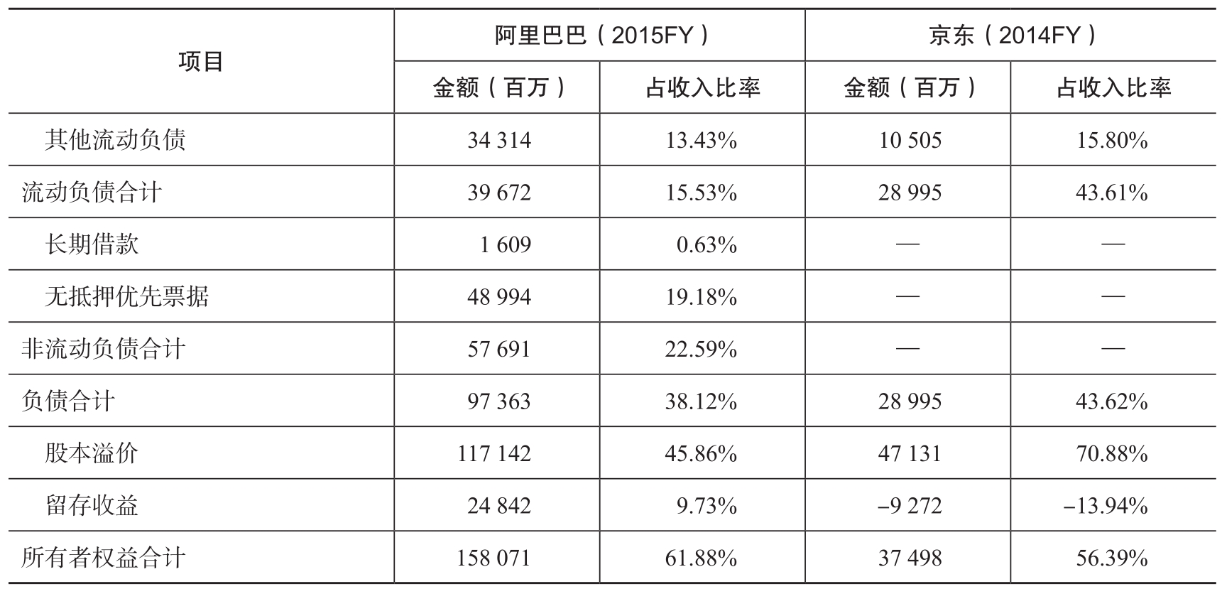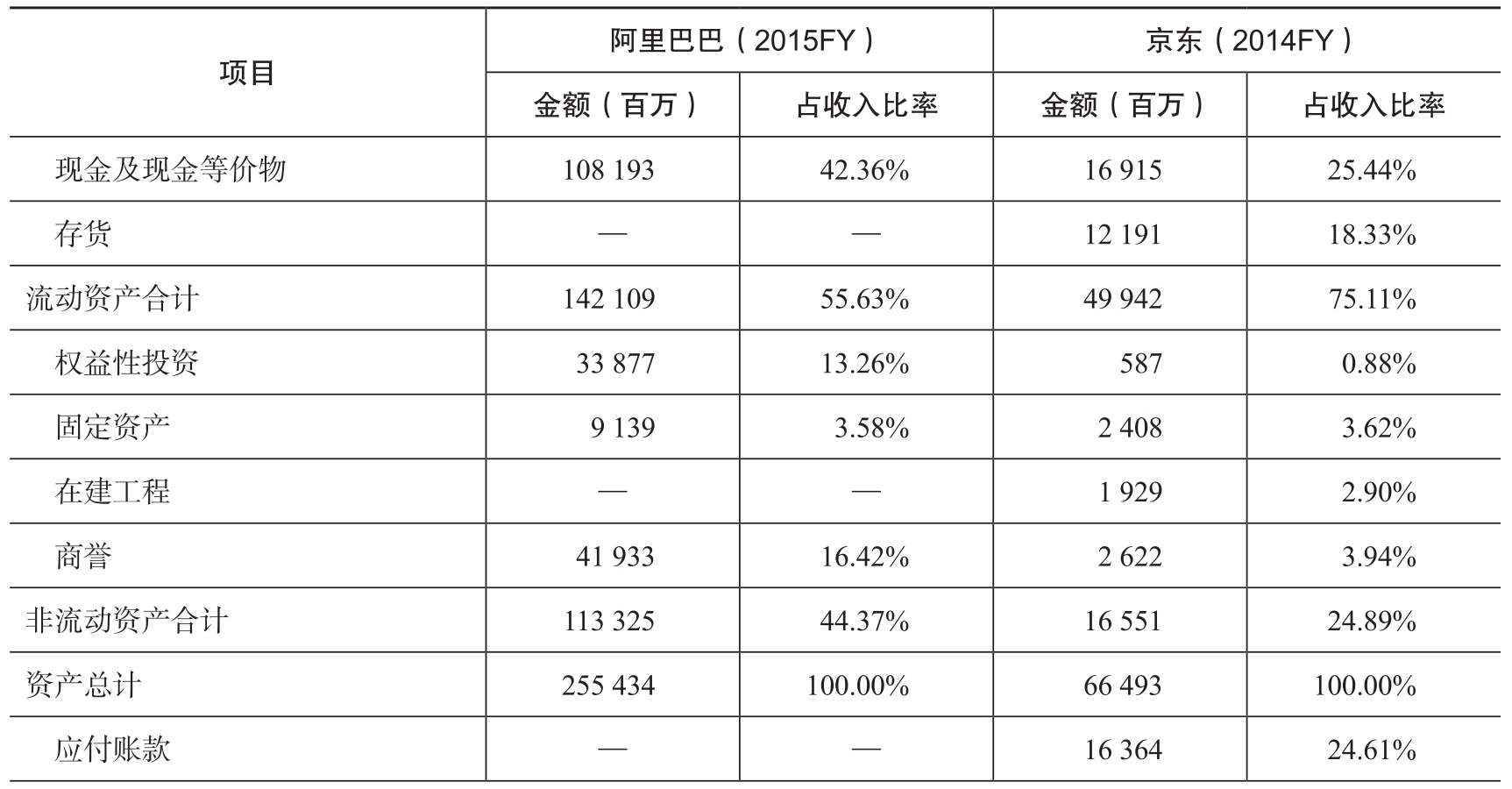 表2-2 阿里巴巴和京东的资产负债表(简表)