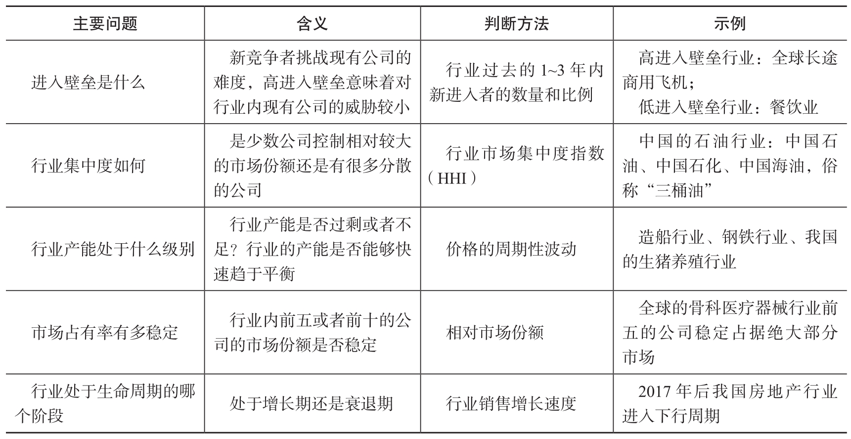 对于行业内潜在进入者的深度分析和行业竞争水平的分析是行业分析的重要基础,潜在进入者进入壁垒分析通常需要回答的问题如表2-4所示。