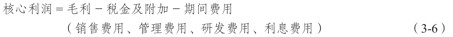 核心利润用来反映企业自身的经营活动所带来的利润。本书中有关利润表的许多分析内容就是以对核心利润的分析为基础的。核心利润的计算公式为