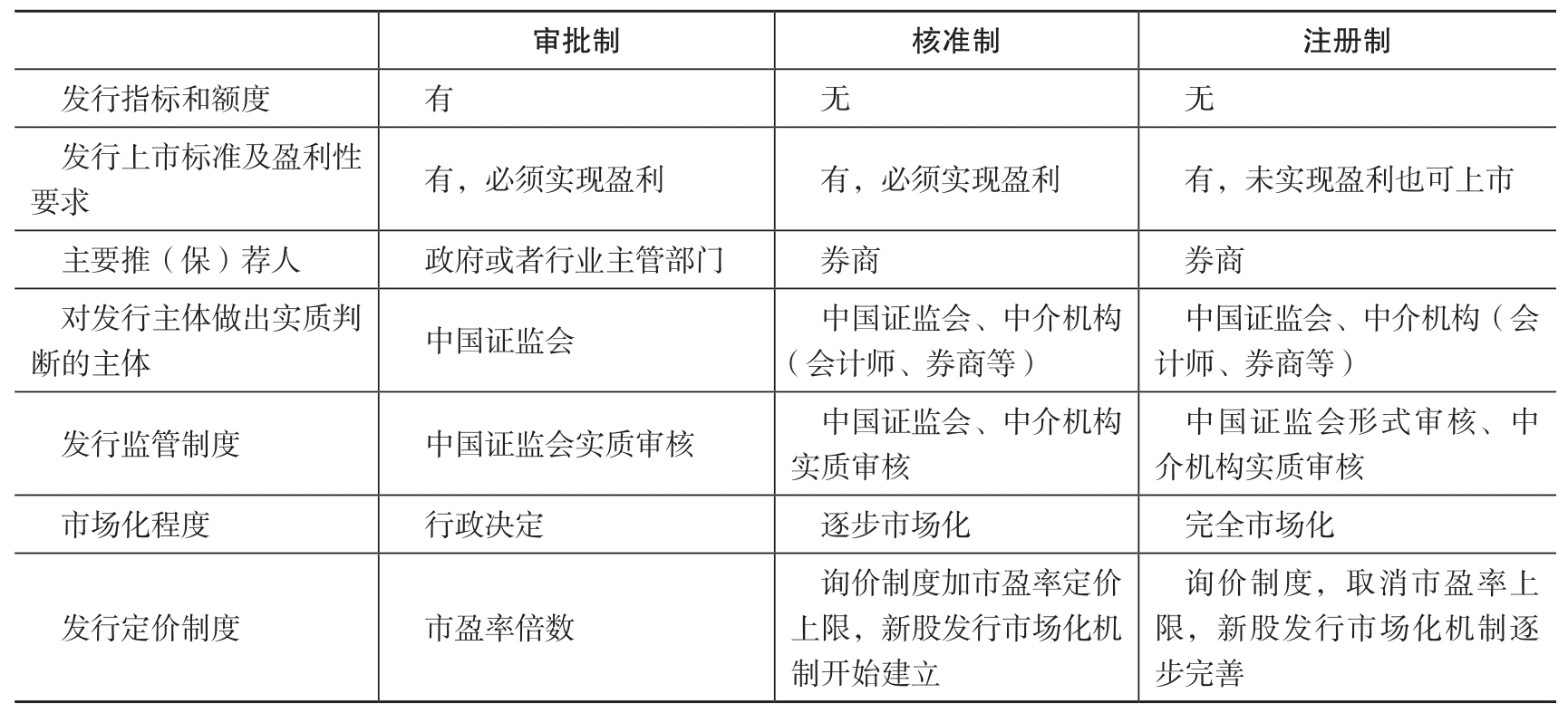 股票发行审核制度和发行定价制度是公司进入资本市场的准入监管制度。发行审核制度规定谁有资格发行股票以及发行数量,而发行定价制度决定公司的股票发行价格确定机制和方法。我国的证券发行制度也从审批制(1990—2000年)逐步过渡到核准制(2001—2022年2月)与注册制(2019年6月科创板先实行)并行阶段,全面的注册制从2023年3月份开始实施。