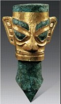 戴金面罩人头像,商,四川广汉出土(三星堆博物馆藏)