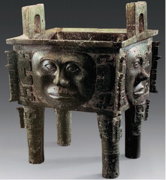 人面纹铜方鼎,商周时期,湖南宁乡出土(湖南博物馆藏)