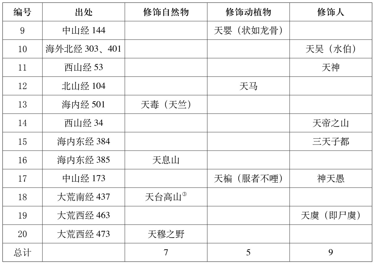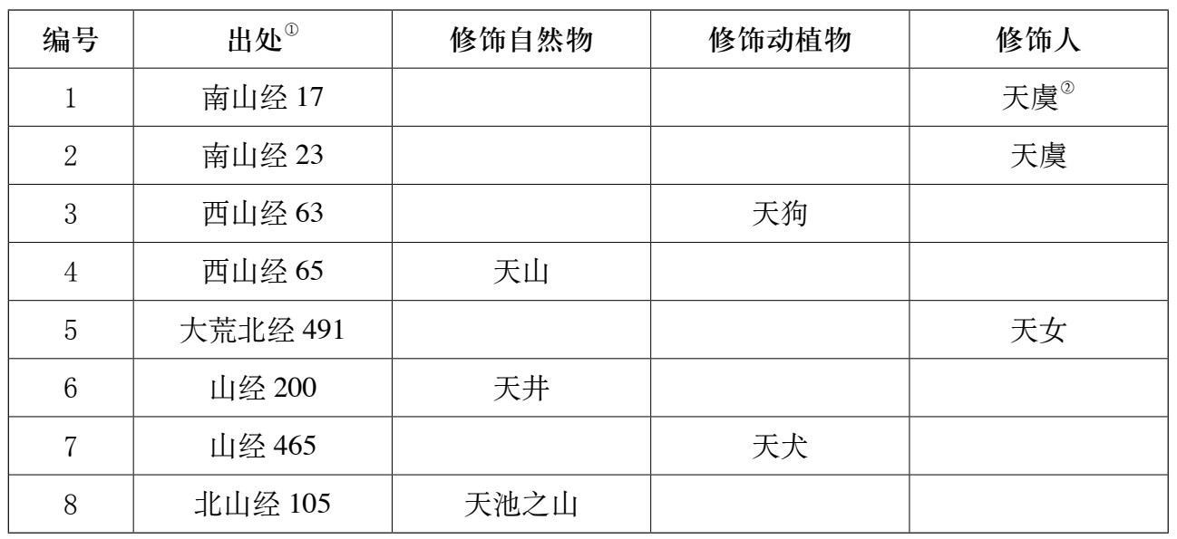 我们可以将《山海经》所载“天”的具体情况列表如下: