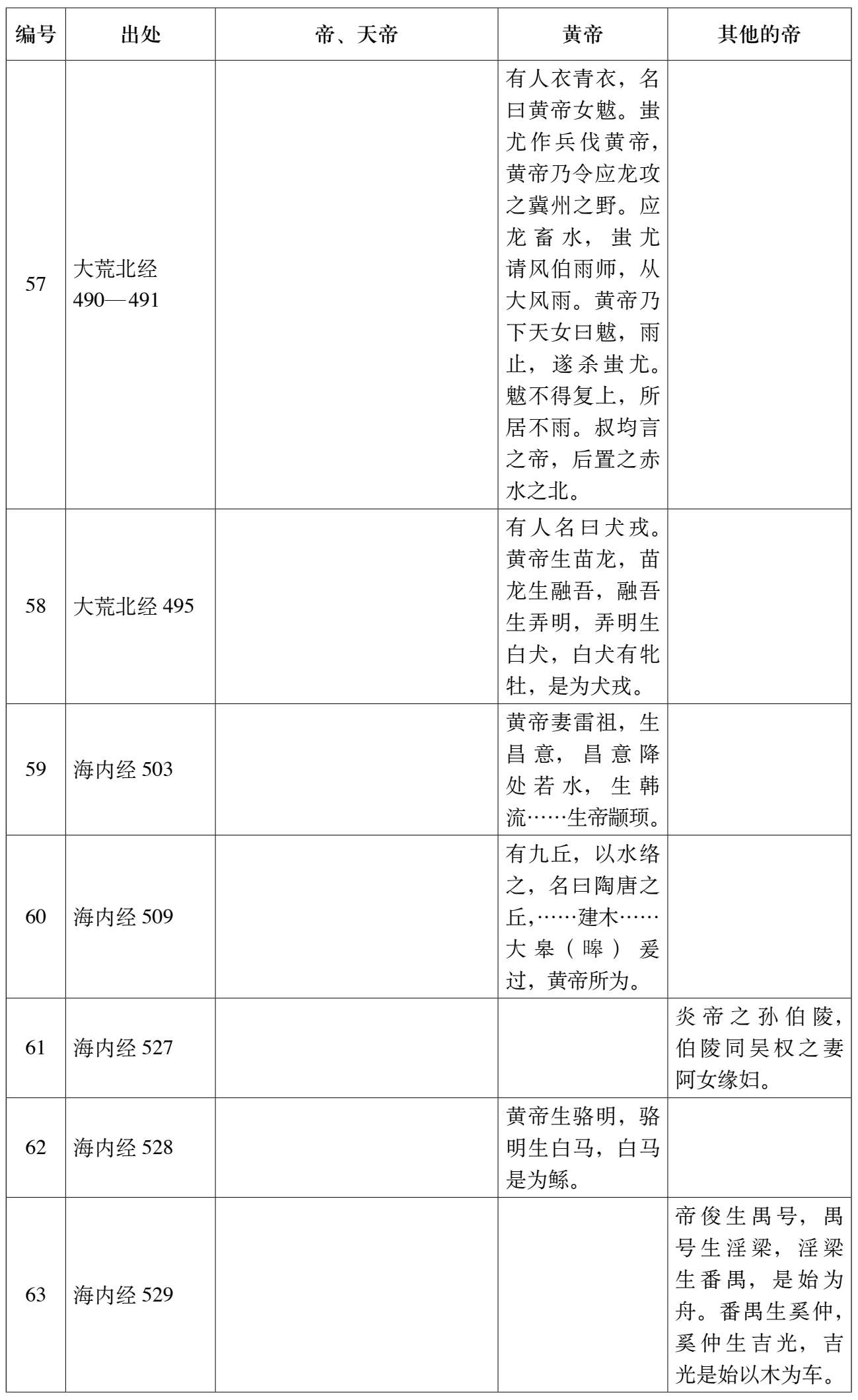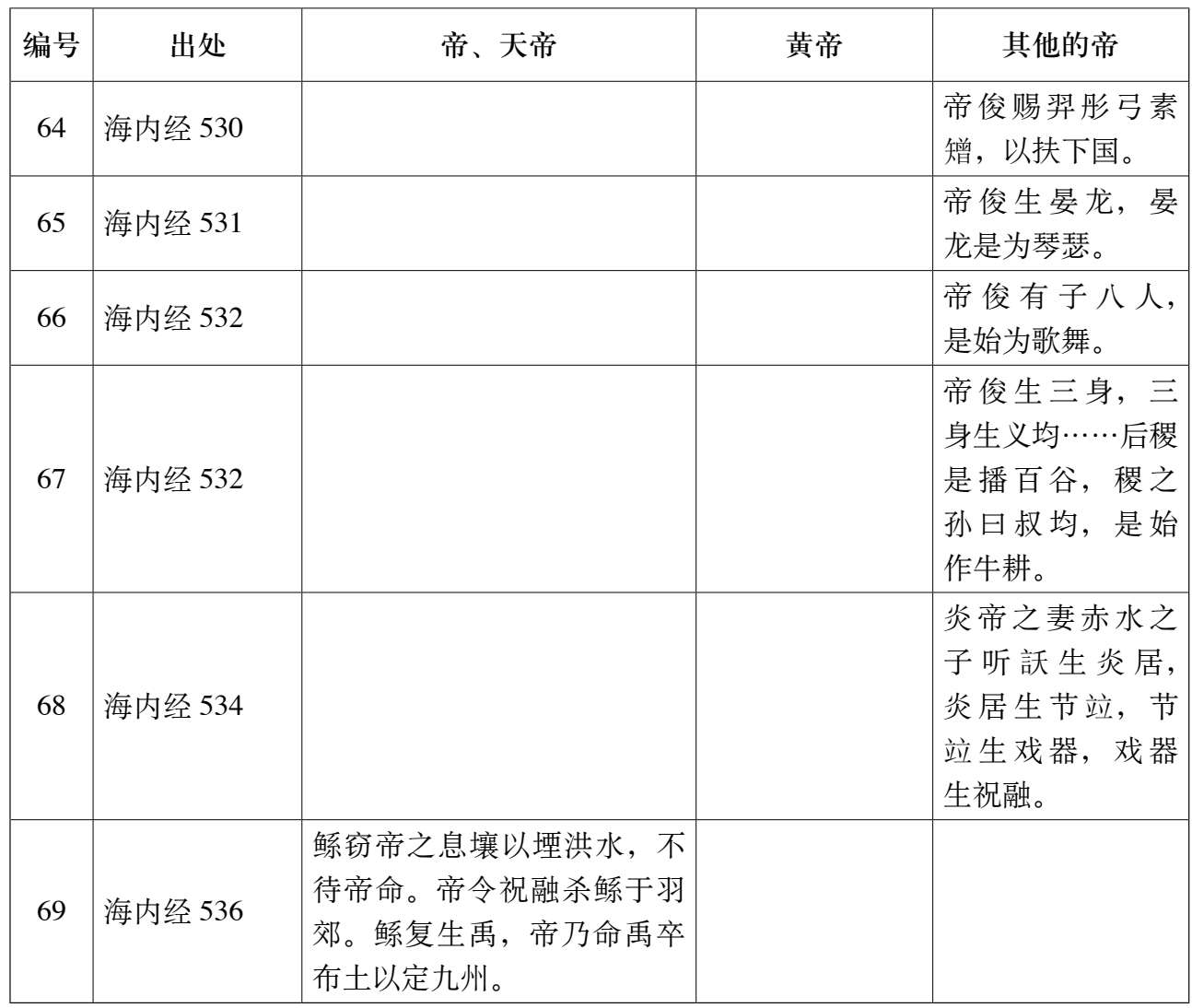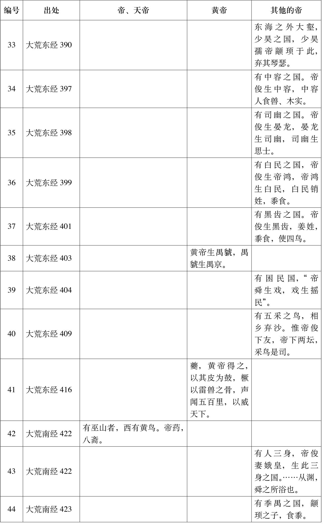 [42] 此表取自徐中舒、唐嘉弘《〈山海经〉和“黄帝”》(《〈山海经〉新探》,第98页)一文。