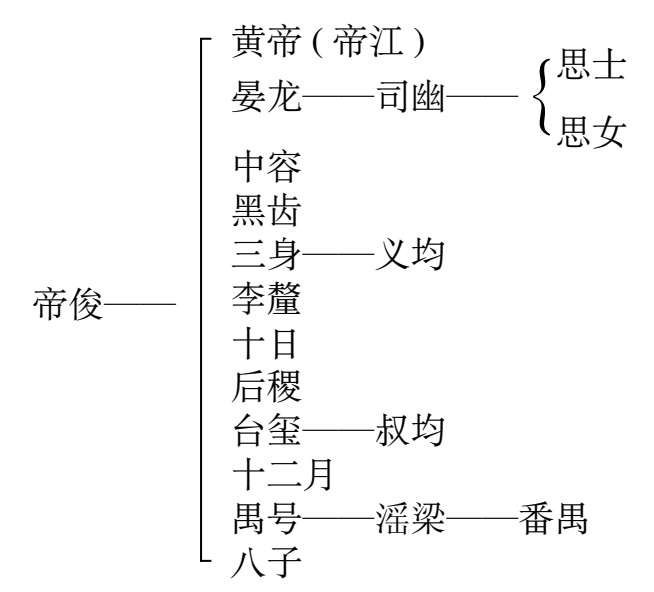 关于“黄帝”“帝俊”等的关系,值得我们考究。请先看《山海经》里的“帝俊”情况表: [42]
