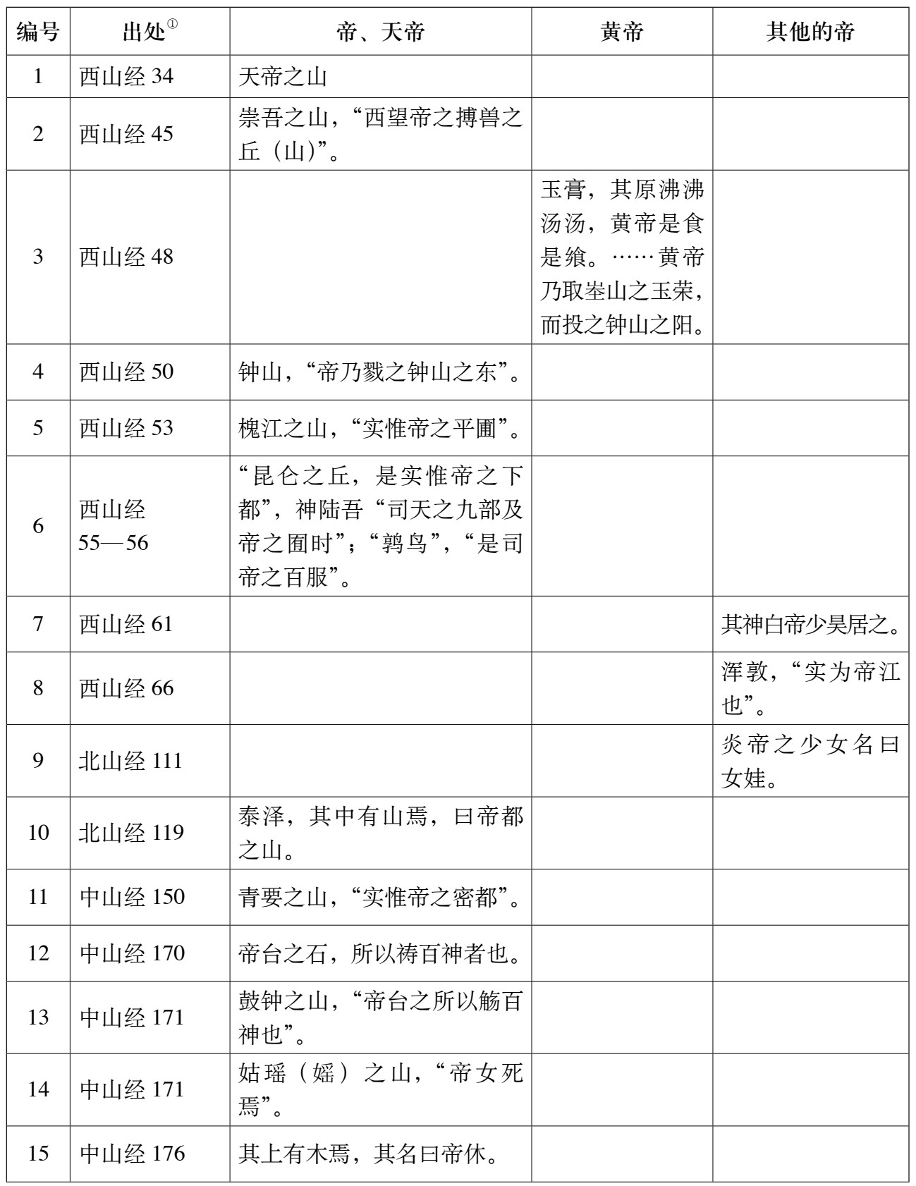 我们应当将《山海经》称“帝”的情况做一简单分析。