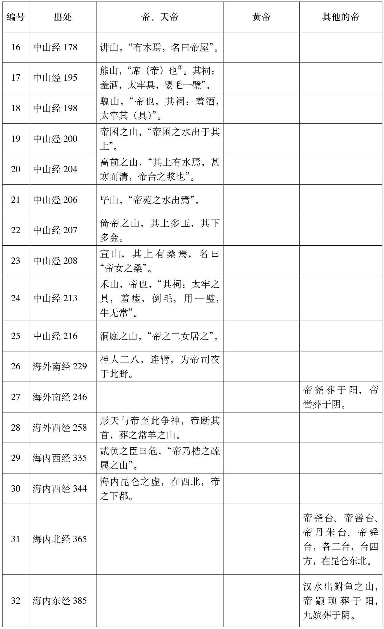 关于《山海经》里的“帝”的具体情况,为观览方便计,特列下表: