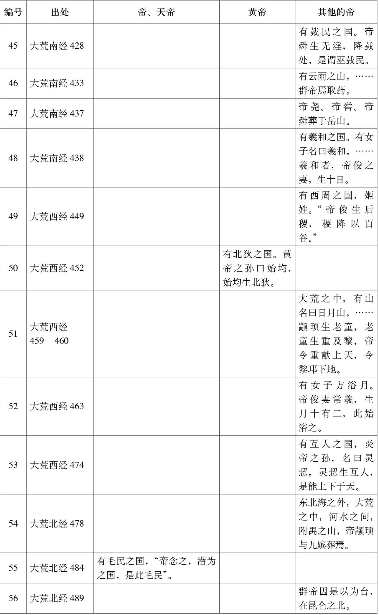 最后,讲复合称谓的“帝”的世系者只见于《海经》《荒经》,而不见于《山经》。