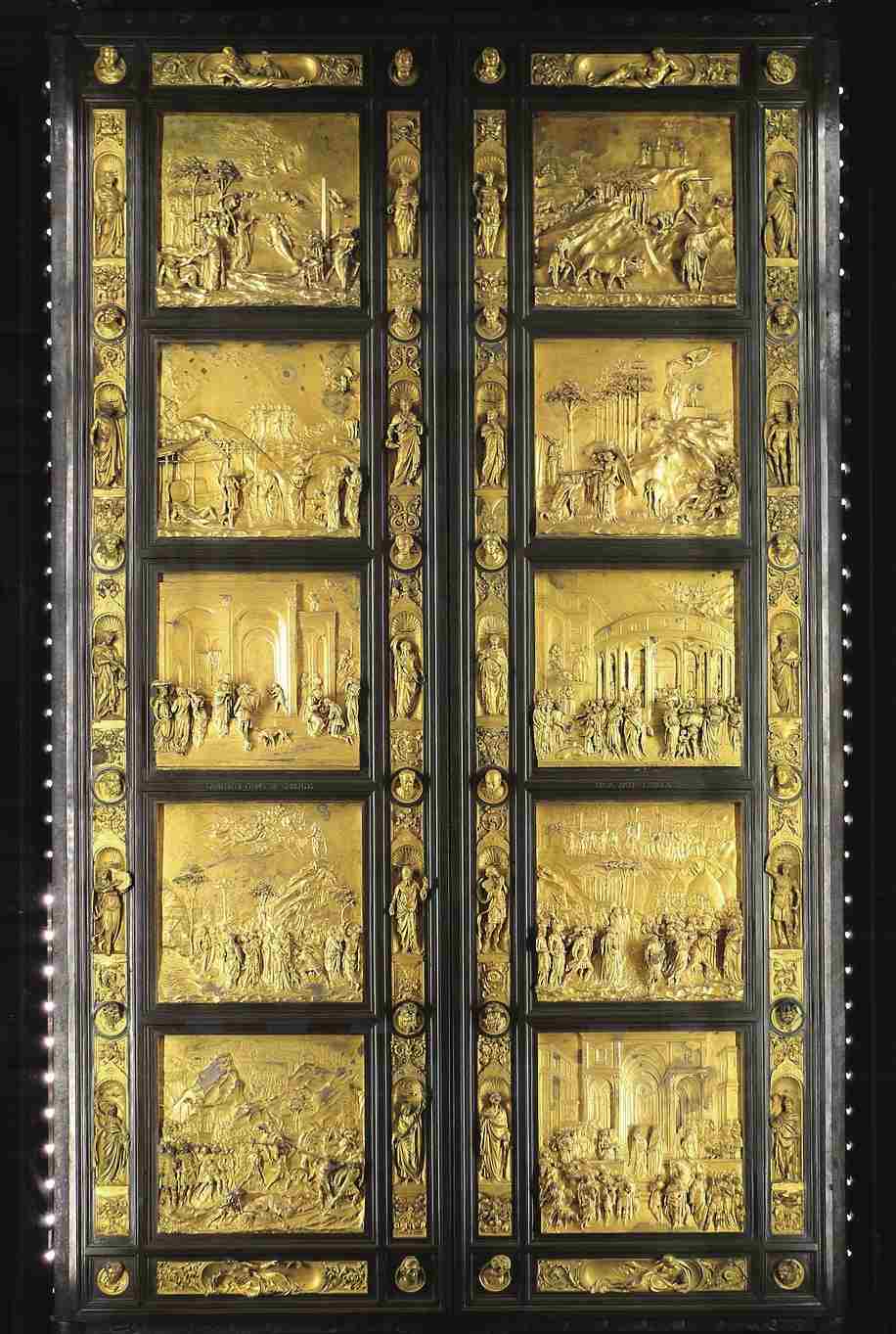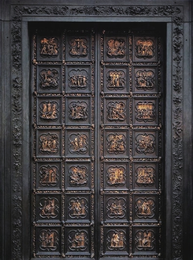 圣母百花大教堂的钟楼是乔托设计的,洗礼堂的大门自然也要找名家来设计。