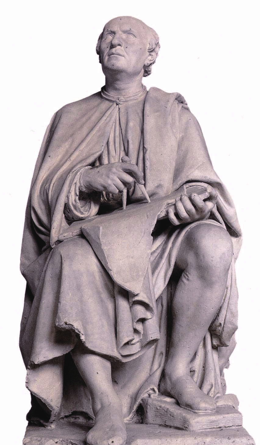 在圣母百花大教堂的侧面有他的雕塑,永远仰望着他毕生的杰作……