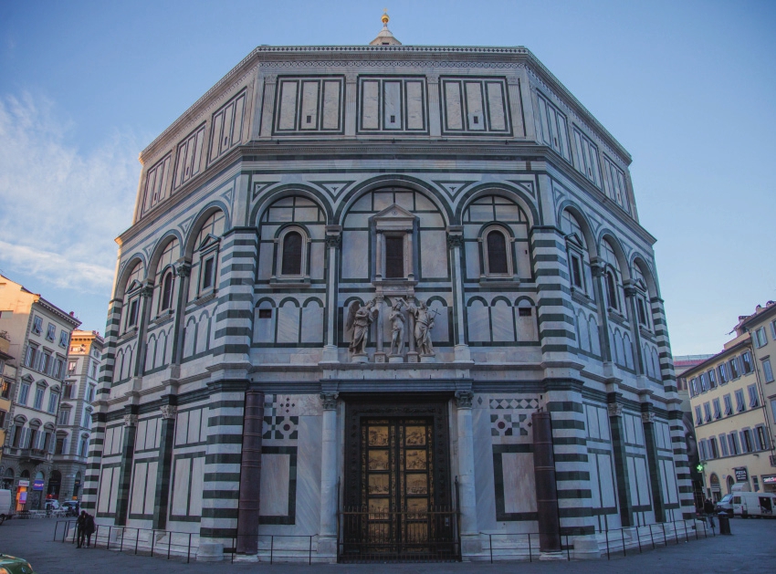 这个故事还要从圣母百花大教堂正对门的洗礼堂开始讲……
