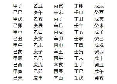 (注:干支的组合是天干的单数配地支的单数,天干的双数配地支的双数,所以不可能有“甲丑”“乙寅”之类。)