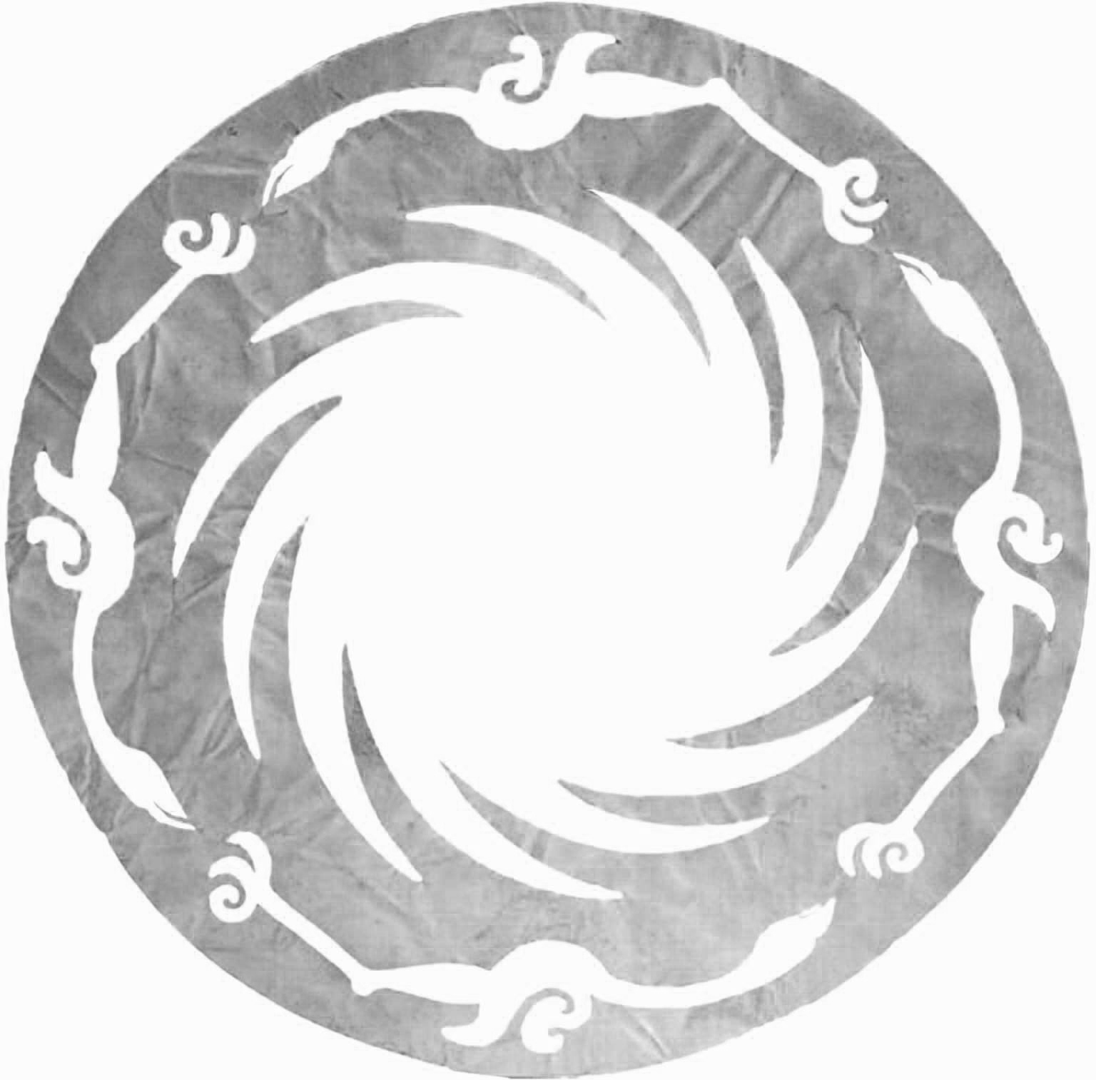 金沙太阳神鸟图案的构型不是完全意义上的孤品。东汉时期在新疆龟兹 (今库车) 开凿的克孜尔千佛洞壁画中也能见到类似图案。图中四只白鸟围着太阳顺时针方向飞翔。在壁画所绘星空的另一边,则是四只白鸟绕着众星围拱的月亮飞翔。(龟兹按照字典读法,应读qiū cí。但是实际上,它指的是新疆“库车”这个地名。按照新疆本地的读音,读kù cī。这个读音一千多年来变化并不大。所以,今天提到“龟兹”,读qiū cí并不比读guī zī来得更正确。)