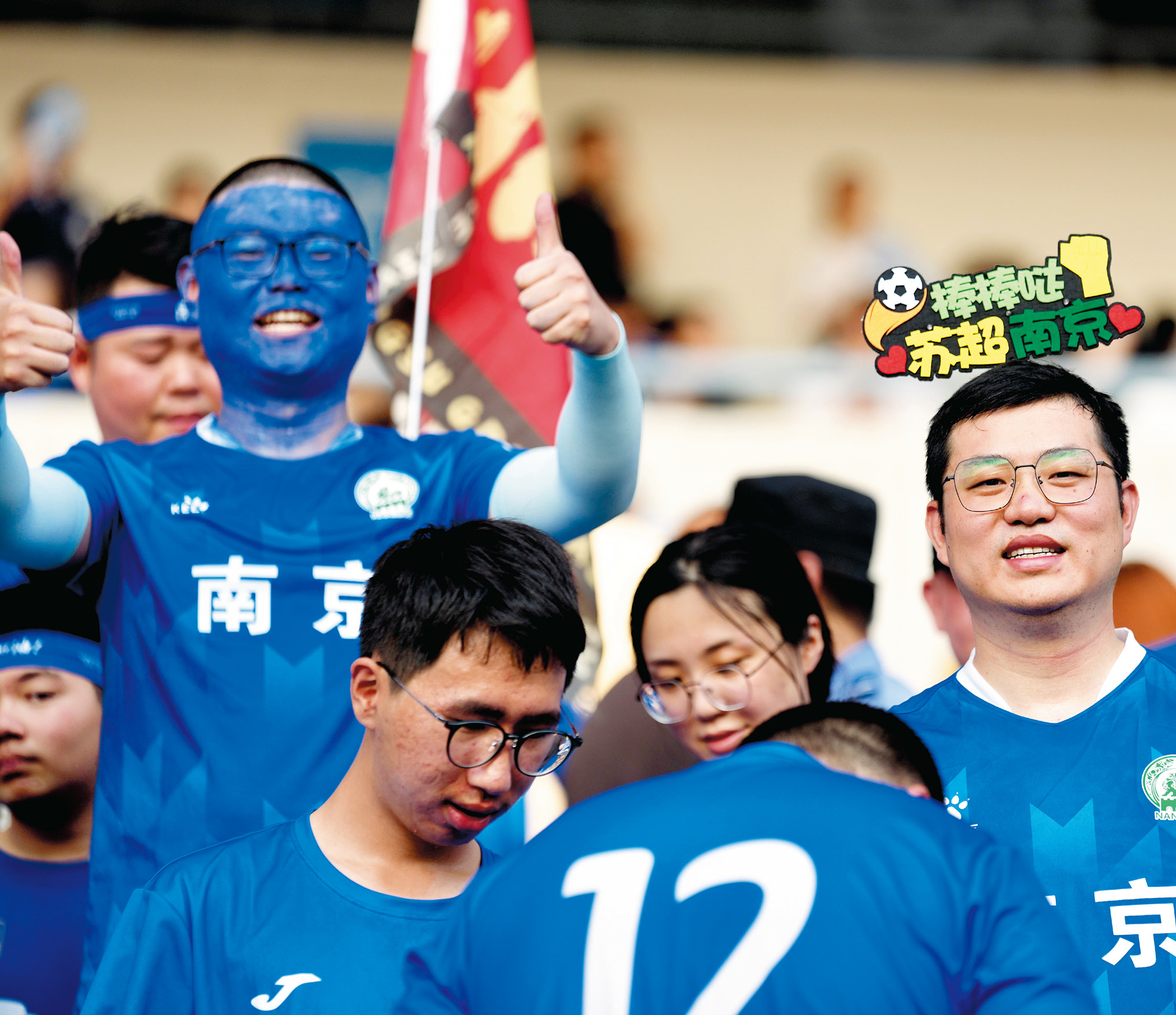 7月5日,南京队主场对阵苏州队,球迷快乐观赛。