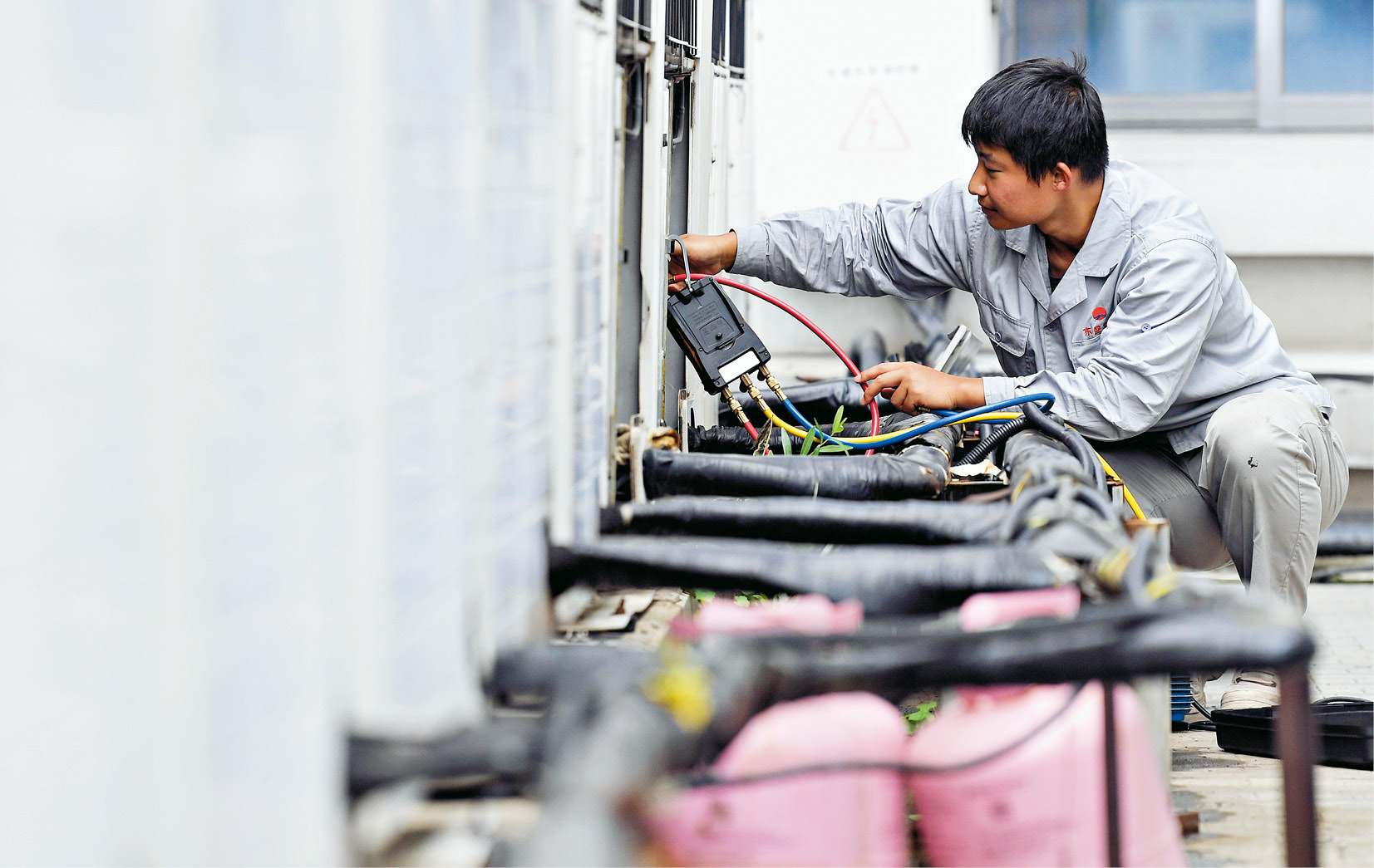 夏天是空调维修工人最忙的时候,有时许俊杰一天要跑四五个维修场所。