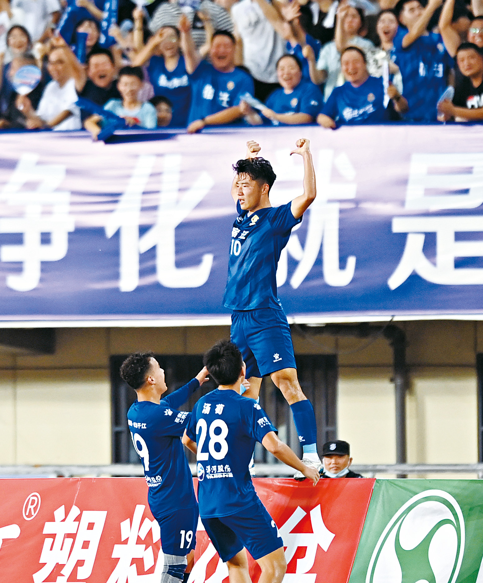 首轮对阵苏州队,高驰进球!他真想马上跑到球迷方阵下,呐喊出内心的喜悦。也许,这不是当年心中的那片球场,但是,“诗和远方”就在家门口又何尝不可,重要的是,梦想终于开花了,掌声与喝彩甚至更为热烈。“苏超诞生,家乡给了我们重新奔跑的赛场!”高驰的肺腑之言,是很多球员共同的台词。