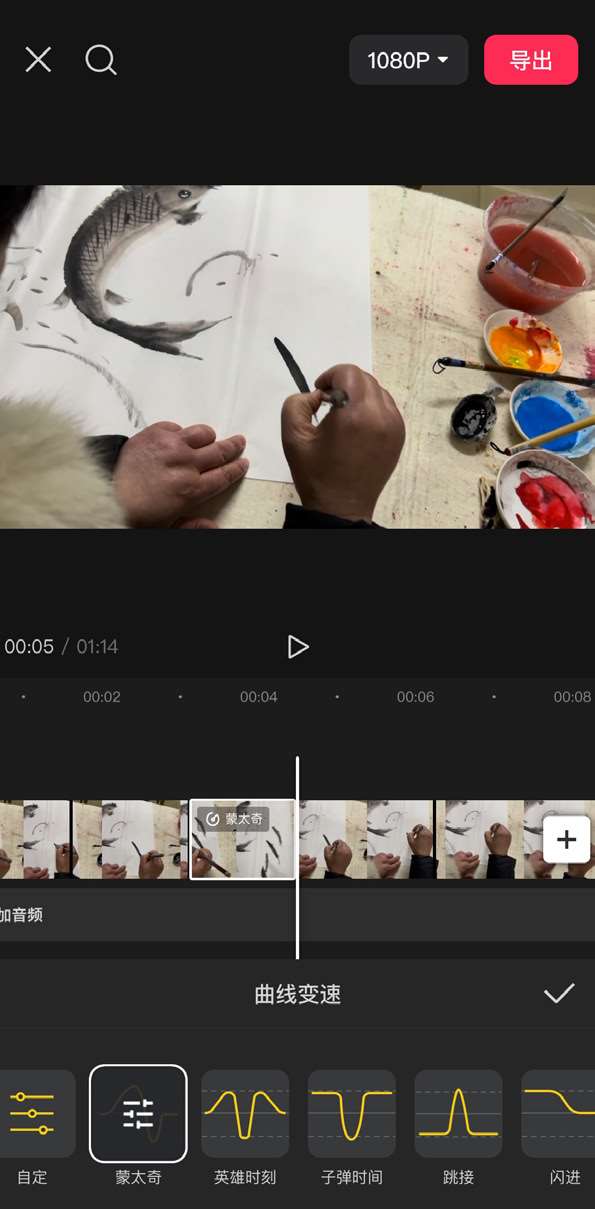 在轨道中选中想要变速的视频片段,点击功能面板中的“剪辑”选项,选择“变速”,再选择“曲线变速”,即可进入曲线编辑器,如图2-10所示。这里有“蒙太奇”“英雄时刻”等多种曲线变速模式可供选择,或者选择“自定”选项,通过向上或向下拖动曲线来调整视频的播放速度。向上拖动,视频就会加速;向下拖动,视频就会减速。调整完成后,点击对号图标保存结果。