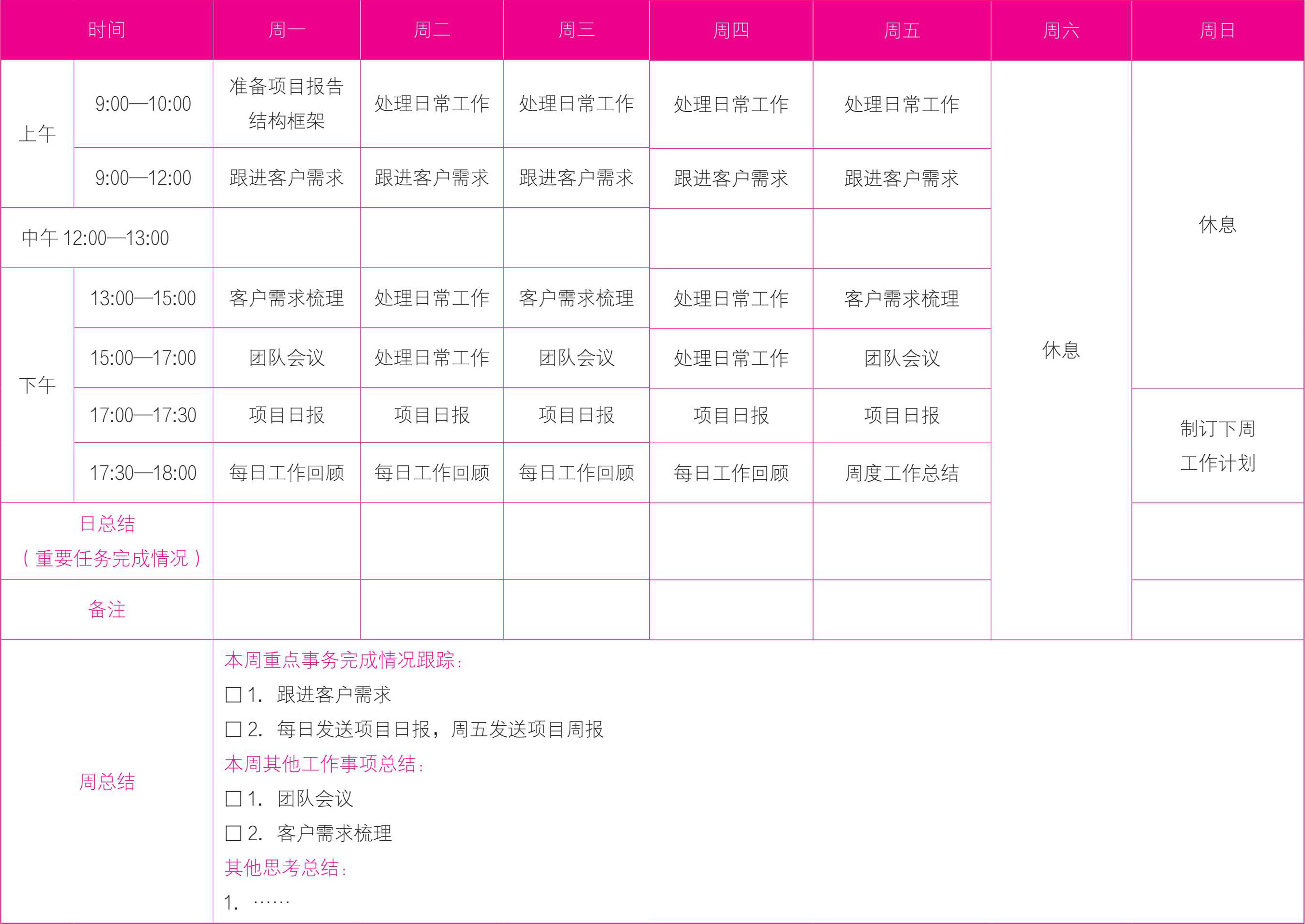 周度计划表