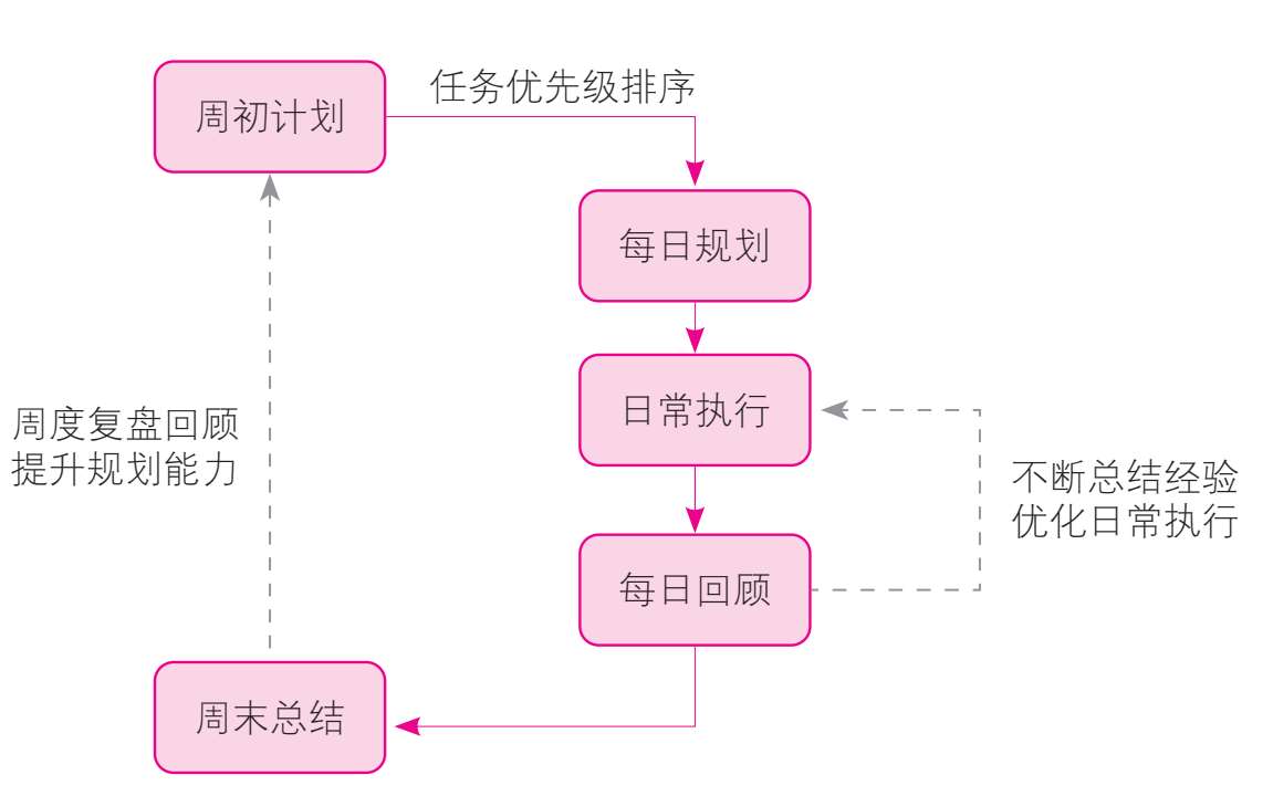 该方法鼓励通过每周的总结与反思,形成自我反馈机制。通过不断地评估自己的时间管理效果,找出不足之处,并据此进行调整和优化,以期在未来的时间管理中做得更好。