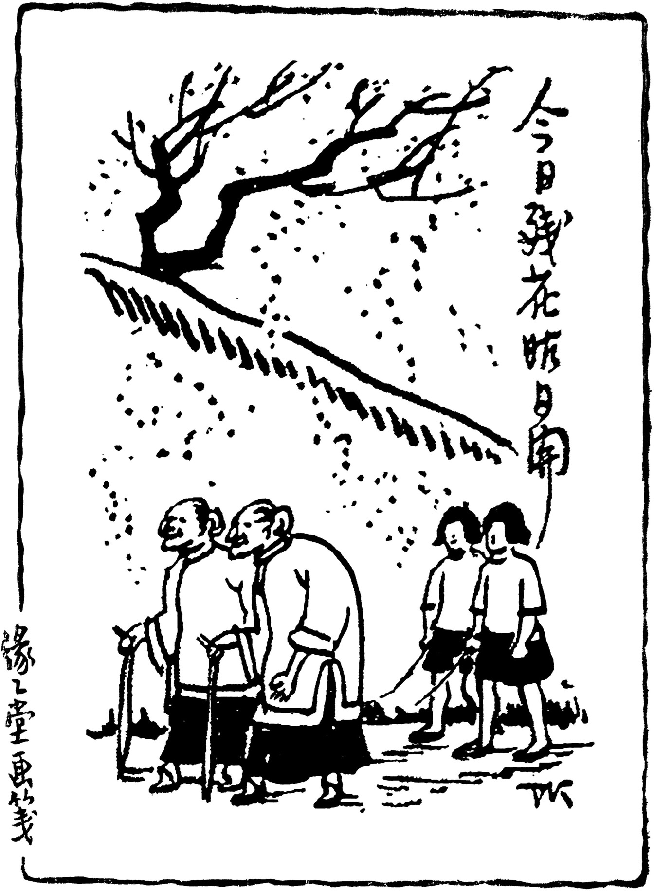 就像《今日残花昨日开》这幅画中的老妪与少女那样,丰先生说:“舞台上的如花的少女,就是将来火炉旁边的老婆子,这句话,骤听使人不能相信,少女也不肯承认,实则现在的老婆子都是由如花的少女‘渐渐’变成的。”