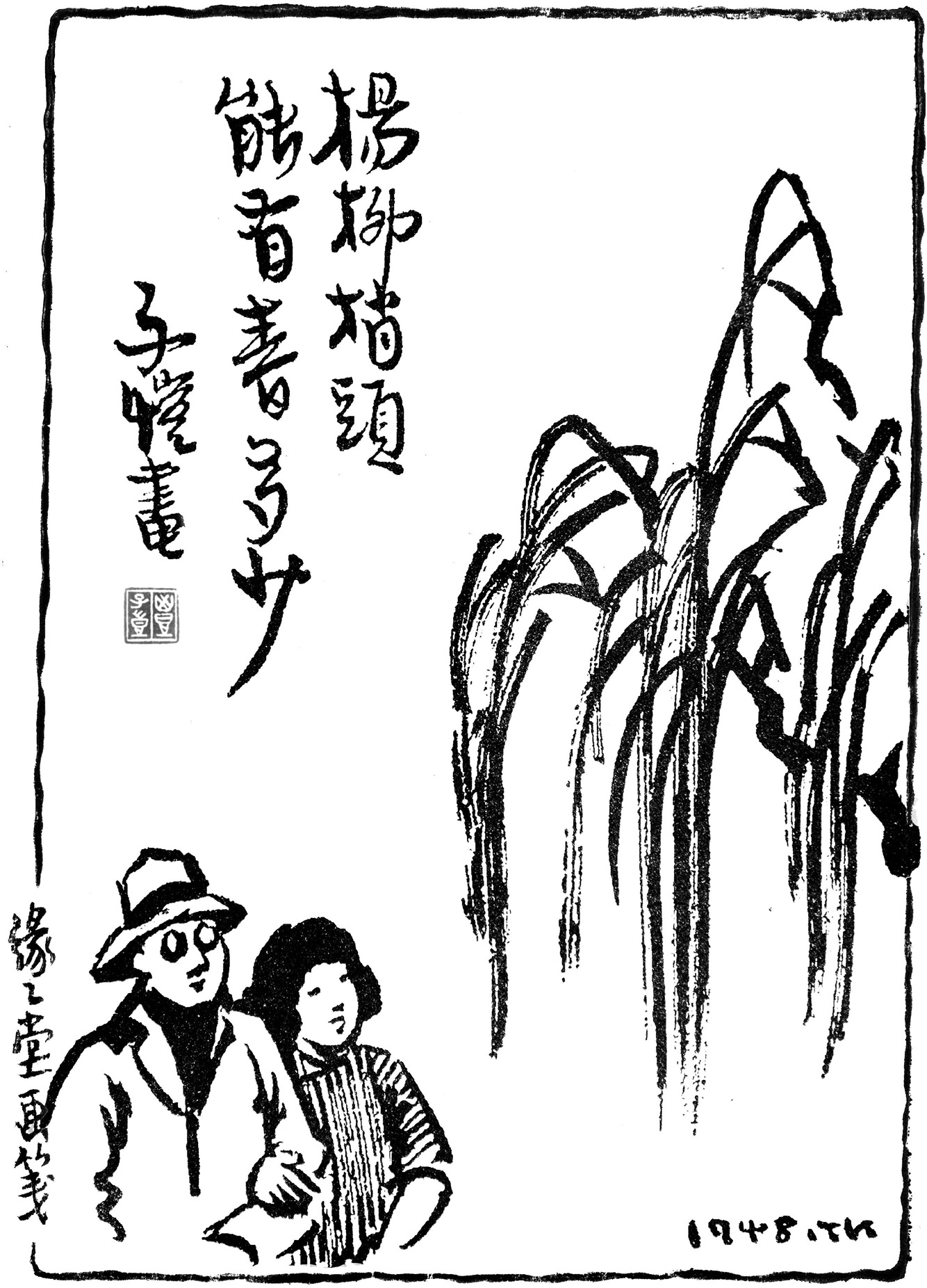 “杨柳梢头”是宋代词人喜爱的词语,如张耒的“杨柳梢头春未多”,钱大椿的“杨柳梢头浅澹烟”,李新的“杨柳梢头春色重”,管鉴的“杨柳梢头月未残”等。丰子恺先生的这幅《杨柳梢头,能有春多少》,标题取自宋代无名氏《苏幕遮·陇云沈》: