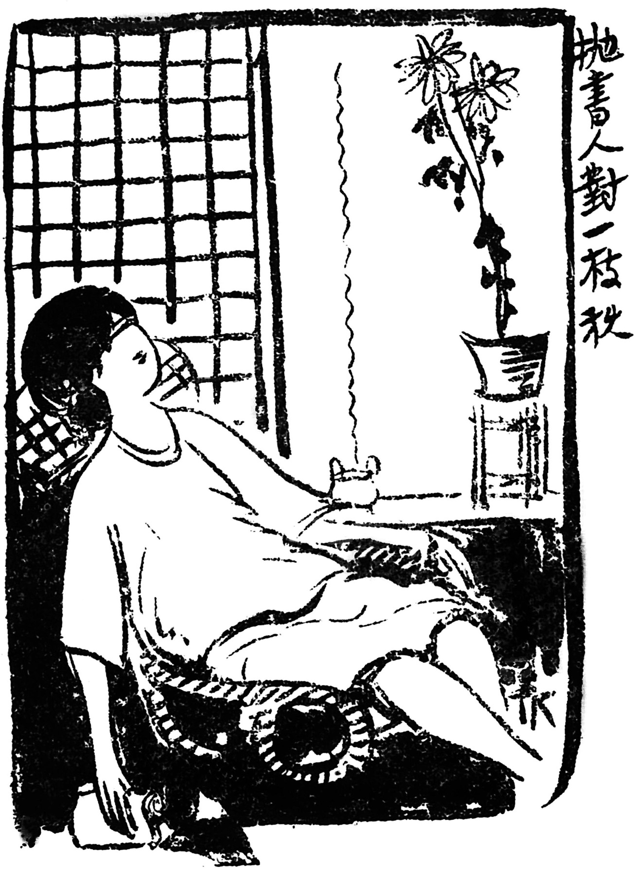 丰子恺的《抛书人对一枝秋》画题取自曹雪芹《红楼梦》中史湘云所写的《供菊》: