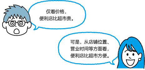 同样的商品,在超市买比在便利店买便宜。这是为什么?可以从“顾客需求”进行说明。消费者在便利店购物除了追求实惠,还有其他的需求,因此便利店可以不在低价上竞争。不过,小浩感到不解……