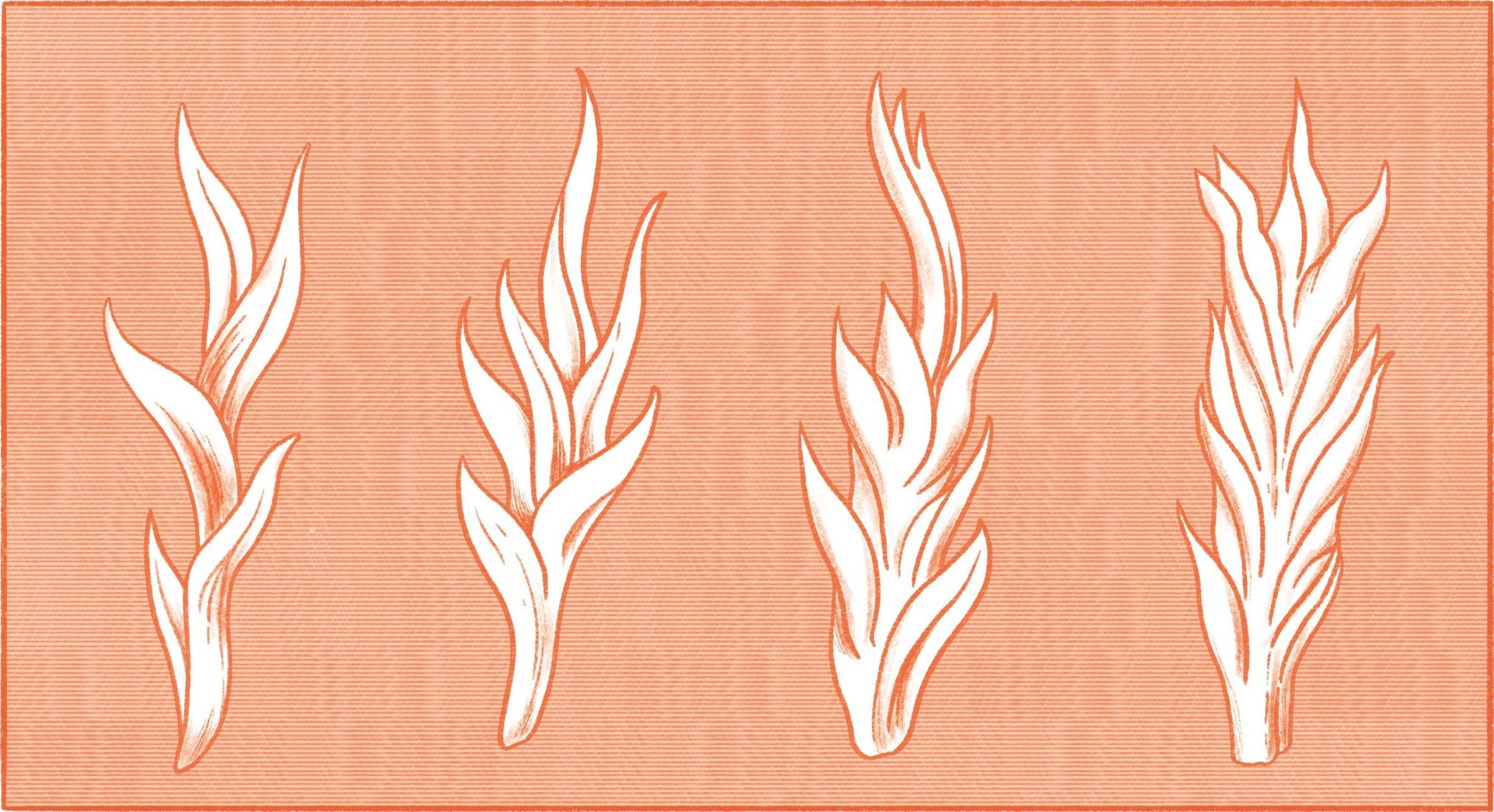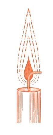 接下来,我们来认识一下火苗的形态。我知道大家都想深入了解蜡烛顶端的火焰,因为唯有火焰才能绽放如此灿烂的光芒。我们知道,金与银闪闪发光,而红宝石和钻石这样的珠宝更是璀璨夺目,但是它们能比火焰更耀眼吗?火焰可以照亮黑暗,而钻石会在夜晚黯然失色,就算发出光泽,也只不过是折射火焰的光芒罢了。蜡烛自身就可以发光,既照亮自己,又照亮他人。现在,我们一起观察下灯罩中的火焰。它稳定均匀,一般会呈现出图3中的模样,但形状会受到空气流动和蜡烛尺寸的影响。