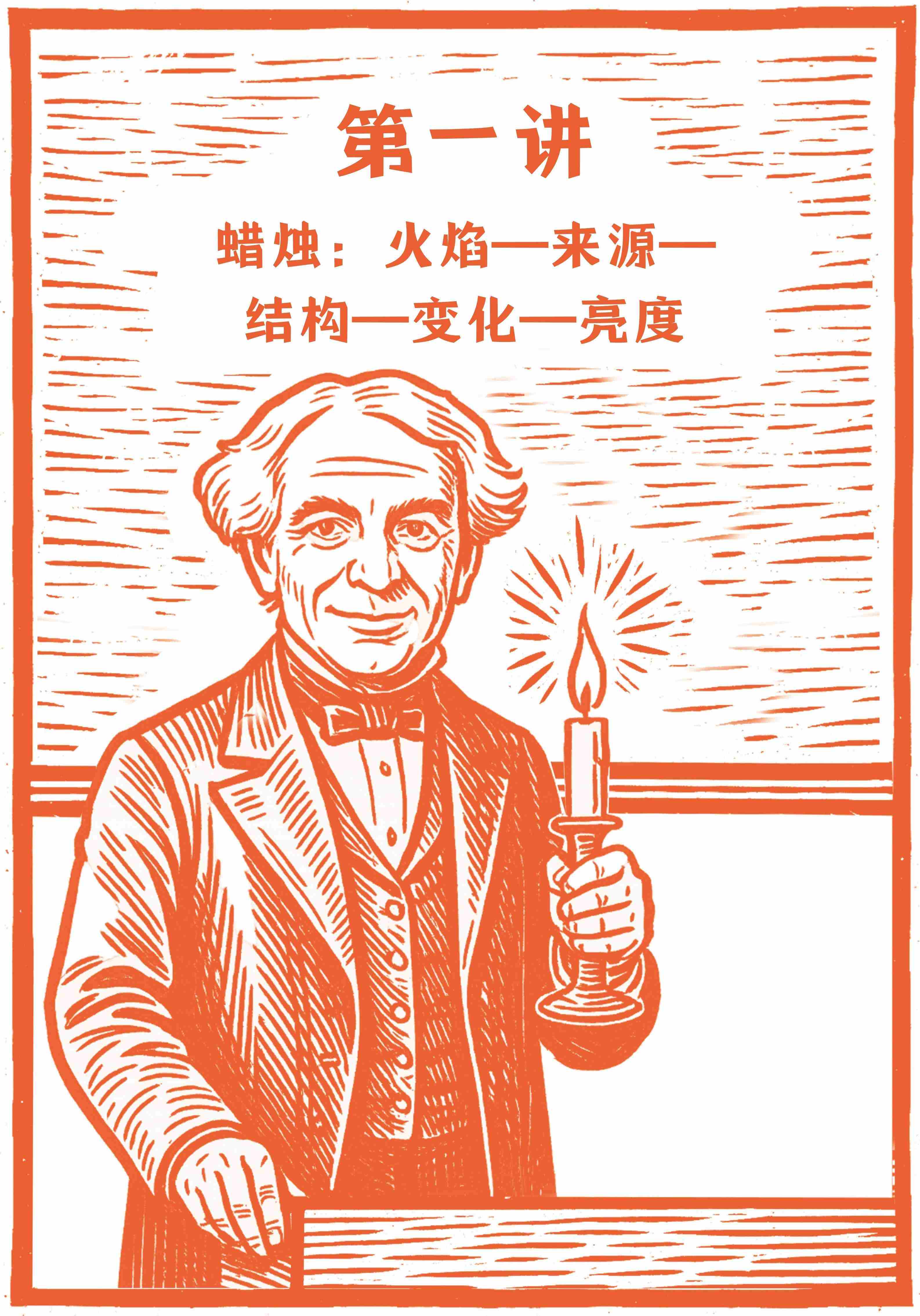 感谢大家来听我的讲座,在接下来的几场讲座中,我打算为大家讲一讲蜡烛的故事。我以前也讲过这个主题,并且如果我可以想讲什么就讲什么的话,我希望每年都讲一次。因为蜡烛实在是太有趣了,它能帮助我们了解很多科学知识。通过观察一支小小的蜡烛,我们可以学到自然界甚至是整个宇宙运转的规律。蜡烛是我们最好的引路人,能为我们开启探索自然科学世界的大门。所以,我保证不让大家失望,一定为大家呈现一场精彩的蜡烛的故事,希望各位不要离开,听我娓娓道来。
