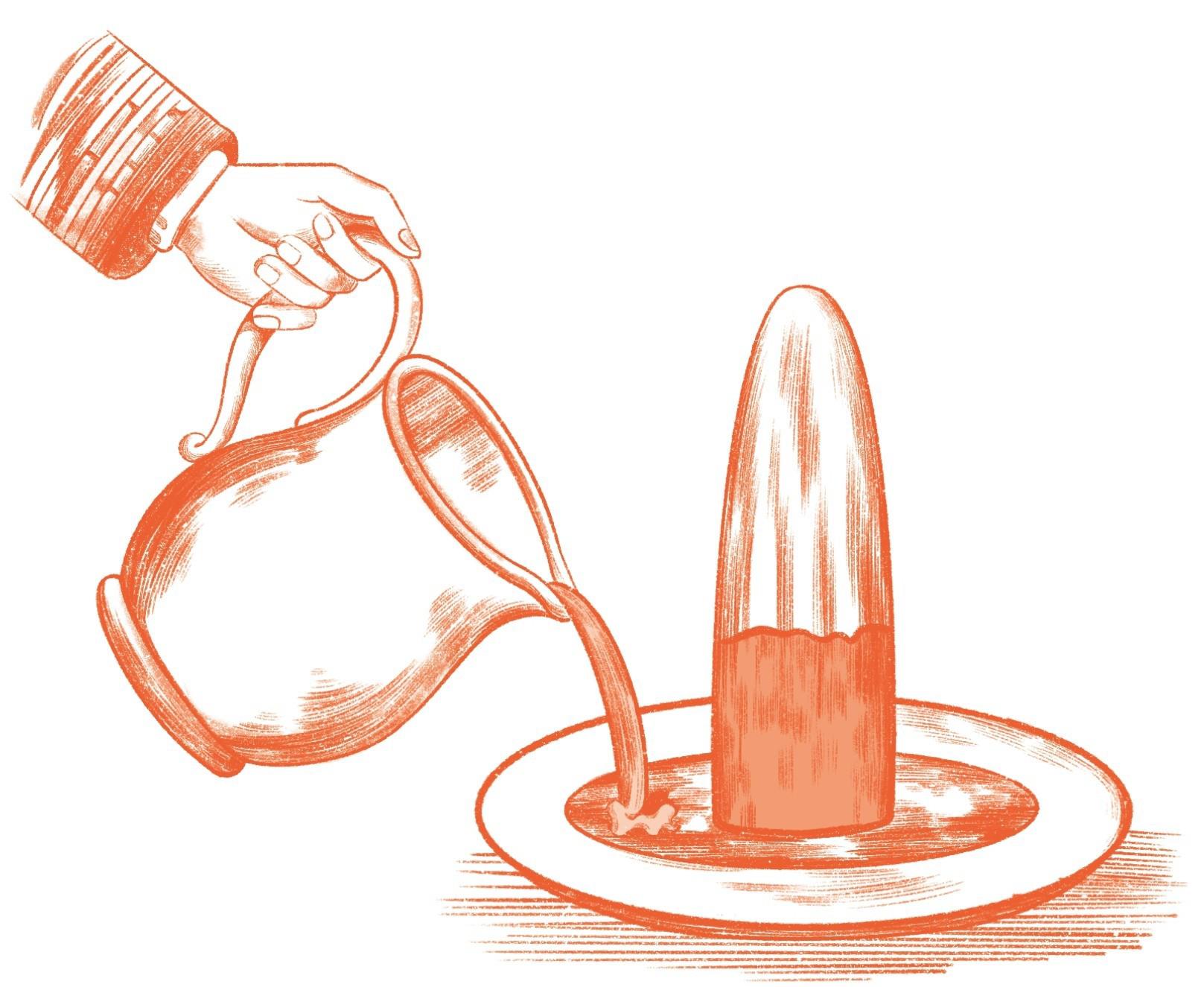 现在,我们来想一下,为什么火焰没有将凹槽中的蜡液烧掉呢?原因是,熔化的蜡液阻止了火焰向下蔓延。如果我们将蜡烛倒过来,蜡液就会流到烛芯上,浇灭火焰。那么蜡液为什么会一直留在凹槽中呢?因为火焰无法瞬间加热所有的蜡液,使它们达到可以燃烧的温度。然而,如果我们正常放置蜡烛,蜡液沿着烛芯一点点爬上顶端,火焰就会有充足的时间把蜡液加热,使蜡液燃烧起来。