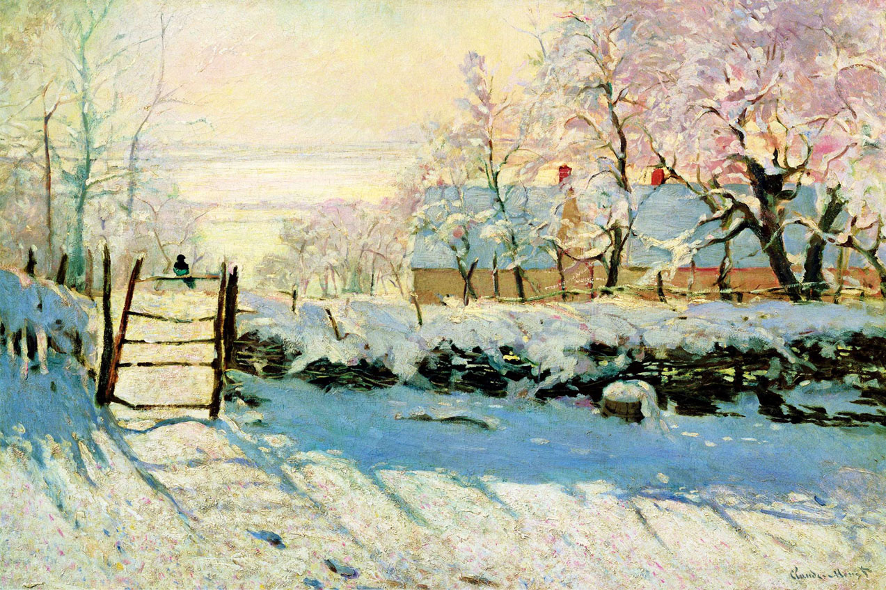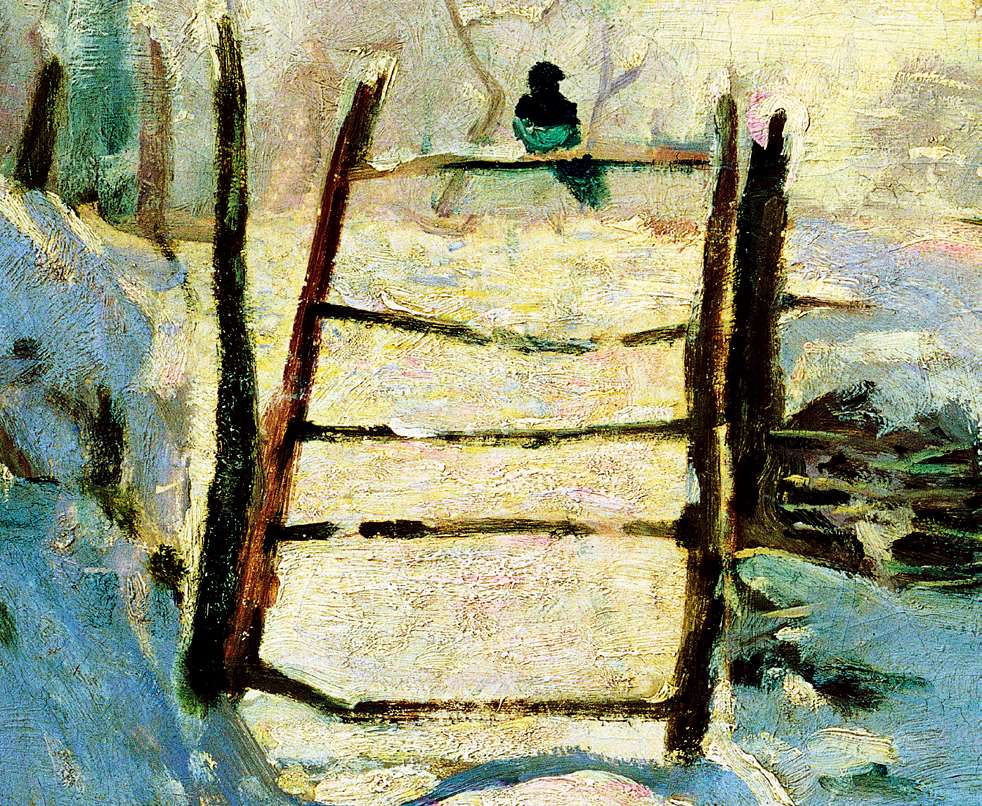 尽管这幅《喜鹊》还留有一些传统绘画风格的影子,但依然准确地记录了在光影交接处那种稍纵即逝的动感,雪后篱笆墙投下的淡蓝色阴影(不是黑色),阳光,雪地反光彼此交相辉映。
