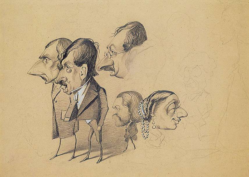 不知道是画得讽刺还是这些人长得讽刺,终于知道什么是讽刺漫画了。这些漫画作品大概创作于1855年至1858年(当时的莫奈大概十几岁)。