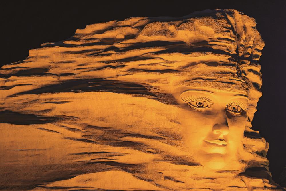 随后我们带着网友参观了楼兰文化广场,这是一处长方形的巨大广场,市民们可以在这里流连忘返。让人印象深刻的是巨型雕刻“楼兰美女”,这是以小河墓地挖出的干尸为原型塑造的,还原了美女生前的美好形象。