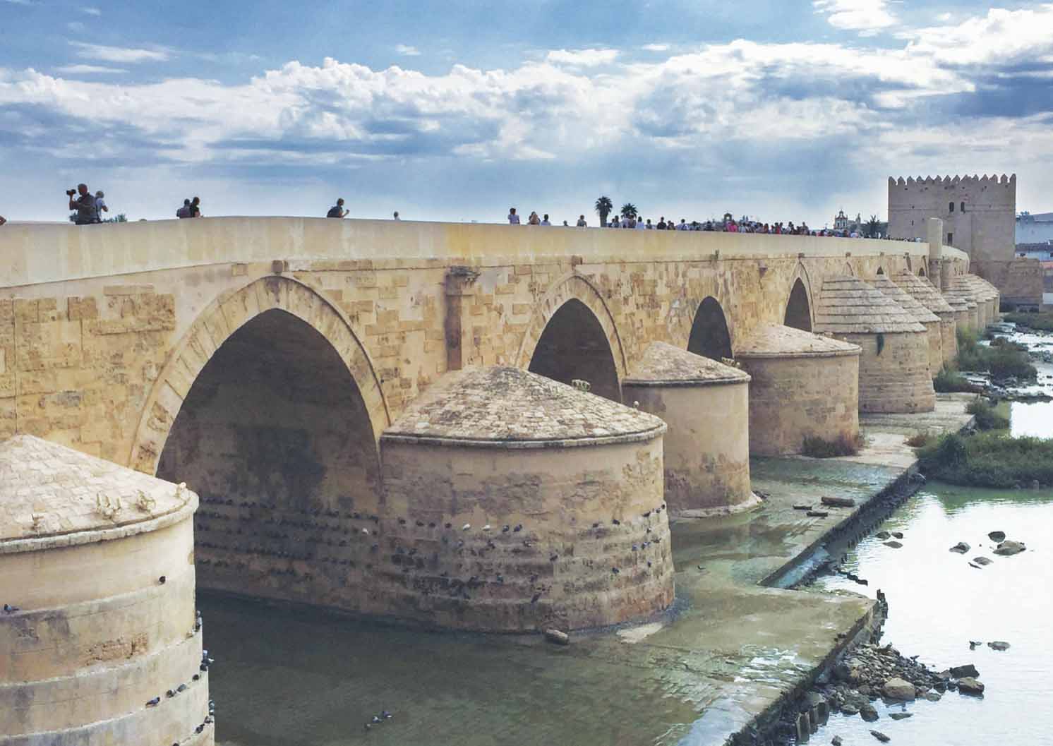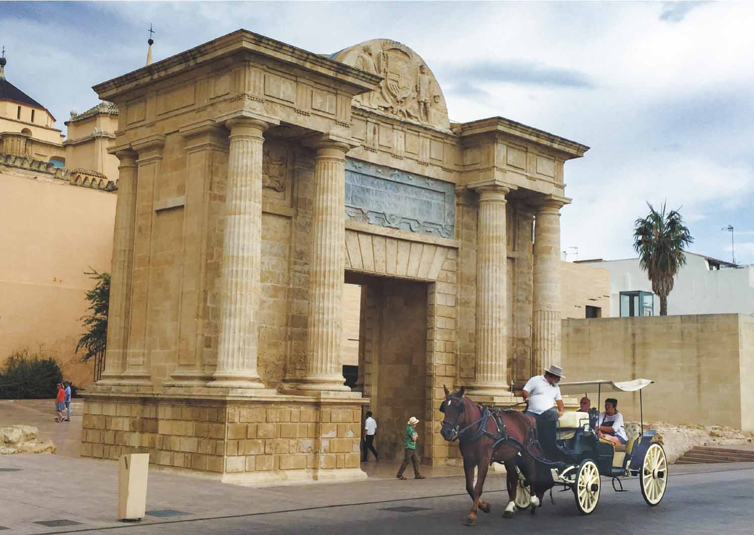 这座古城有罗马桥、罗马神庙废墟、罗马剧院,而阿拉伯人在公元8世纪占领后则在一个修道院的地址上建起了雄伟的清真寺。500多年后,信奉天主教的费尔南多打下科尔多瓦,清真寺被改为天主教堂。如今,一座哥特式教堂塔楼矗立在清真寺的一角,而教堂内部保存的12排马蹄形拱券连廊则是清真寺遗留的建筑。所有的门基本都是阿拉伯风格的。