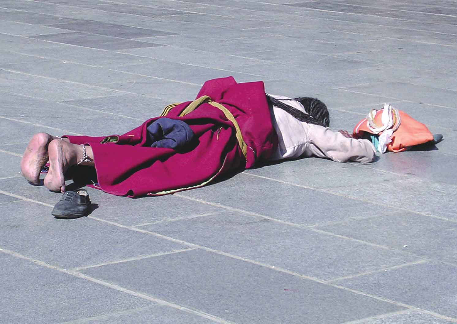 磕长头的一个启示,就是让你在五体投地的时候放低自己高傲的心,以最卑微最虔诚的姿态看世界。