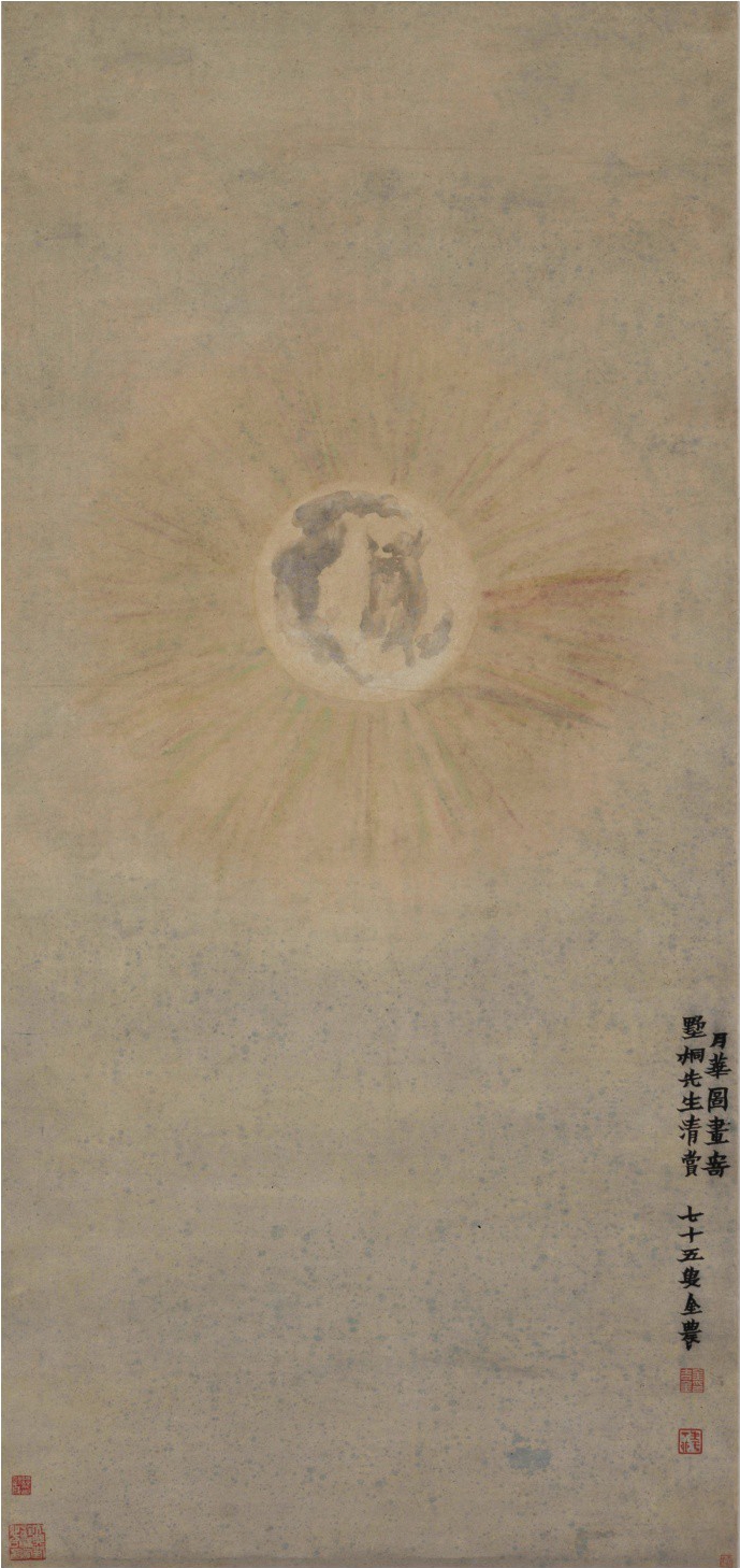金农的《月华图》则像《木兰花慢》一样,与此前所有画作不同。它的重点就是月亮自身,画中只有一轮满月与月华,没有任何花鸟、亭台、人物、风景做陪衬,这在中外美术史上都是极为罕见的。