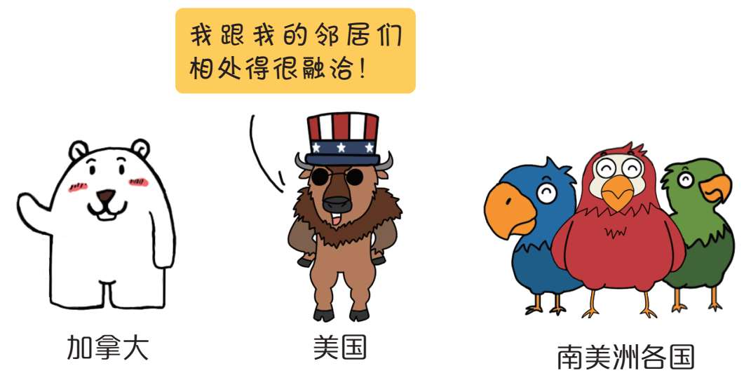这与美国的地缘位置有关,美国两面环海,在与其接壤的邻国中也无劲敌。