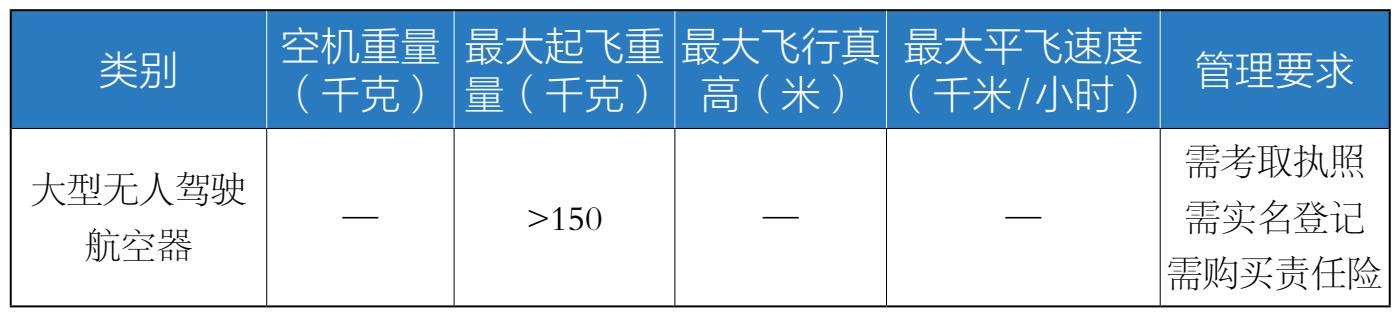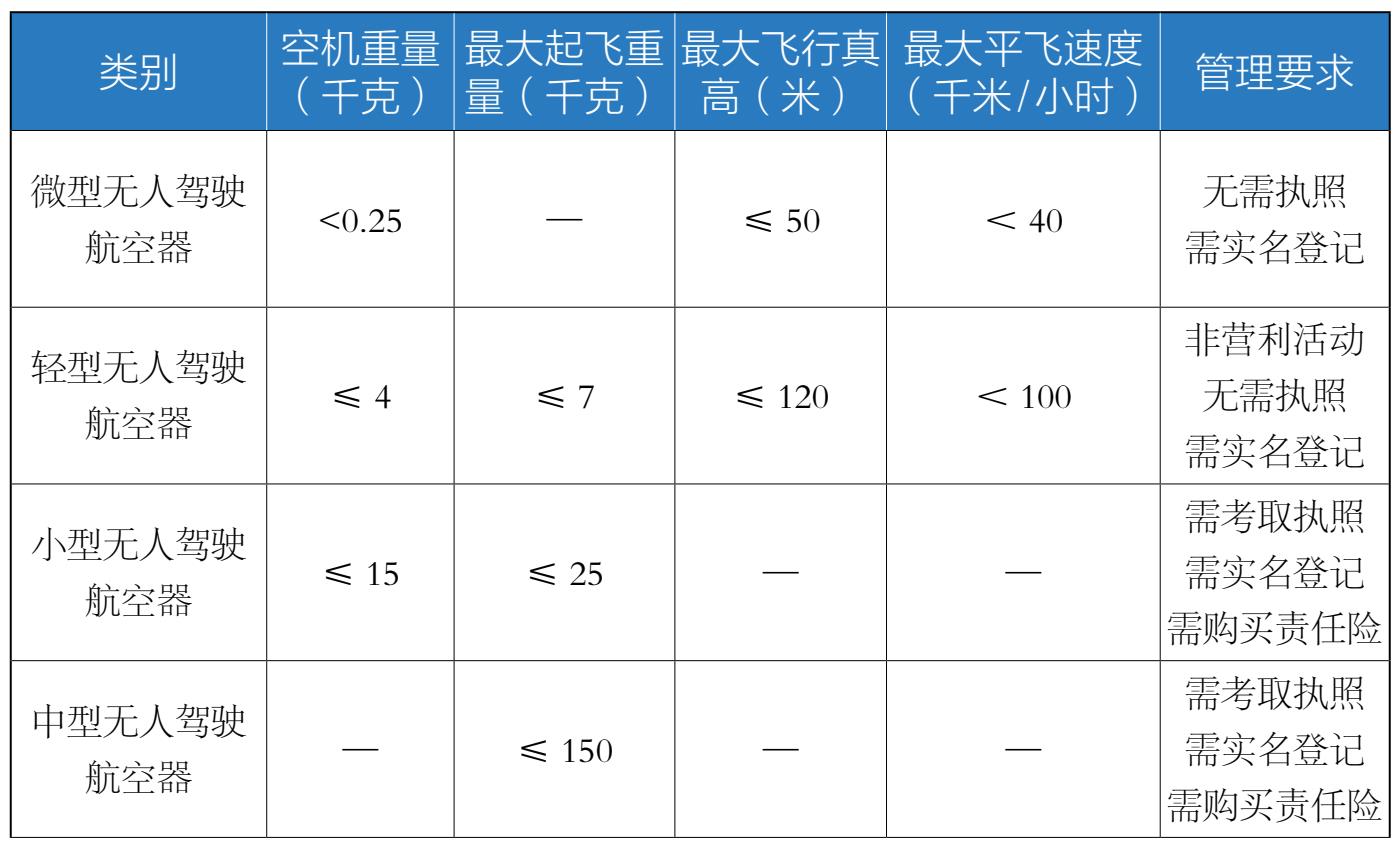 表2-1 《条例》中无人驾驶航空器分类以及相关要求