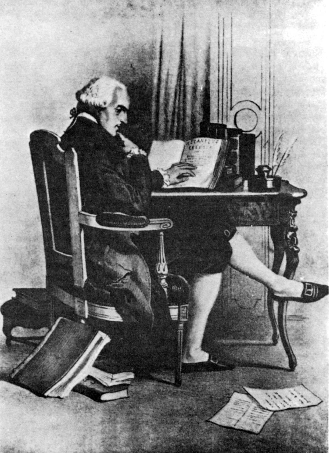 图3 拉普拉斯在阅读自己的著作《天体力学》( Celestial M echanics )(19世纪平版画)